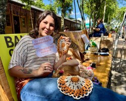 A artesã Márcia Lorenzet também feliz com a atividade. "Além de decorar os espaços do artesanato a gente pode também divulgar nosso trabalho, nos vincularmos a outras pessoas e fazer novas amizades", disse.