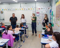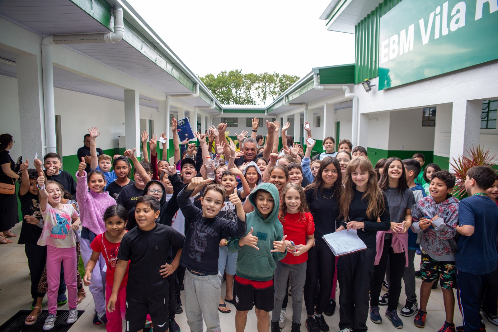 O anúncio foi feito pelo prefeito João Rodrigues e pela secretária de Educação, Astrit Tozzo, durante uma visita à EBM Vila Real, onde conversaram com professores, membros do conselho escolar e famílias.