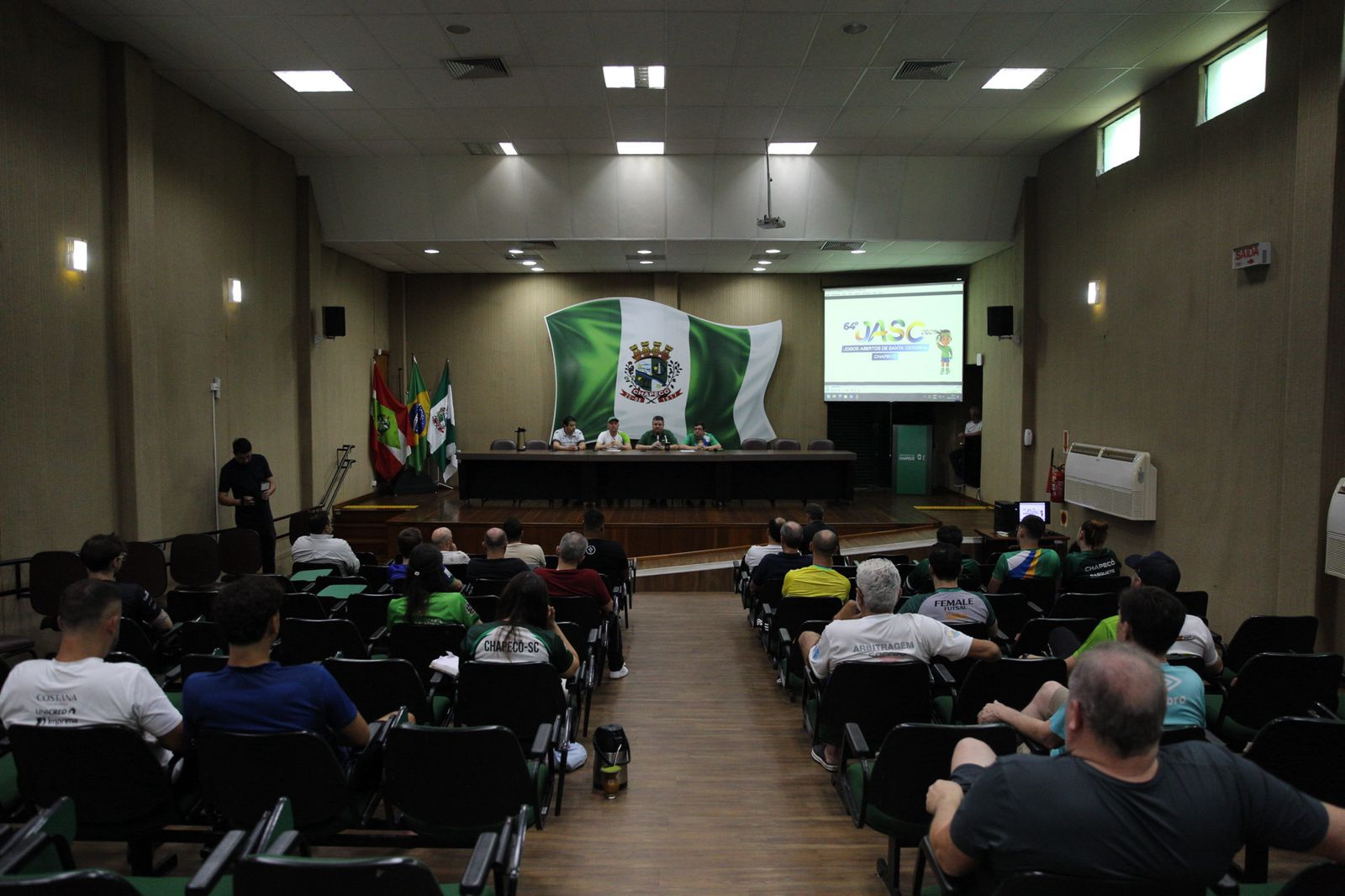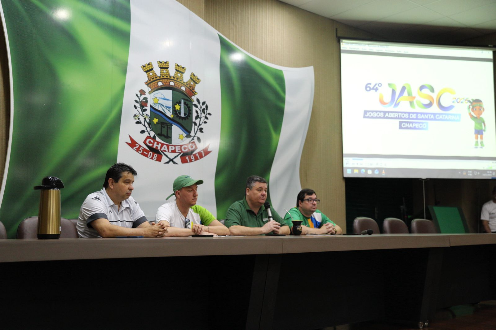 A prefeitura de Chapecó realizou na manhã desta sexta-feira (14), no auditório da Sede Administrativa, uma reunião com os coordenadores das modalidades nos locais de competição dos Jogos Abertos de Santa Catarina (JASC).