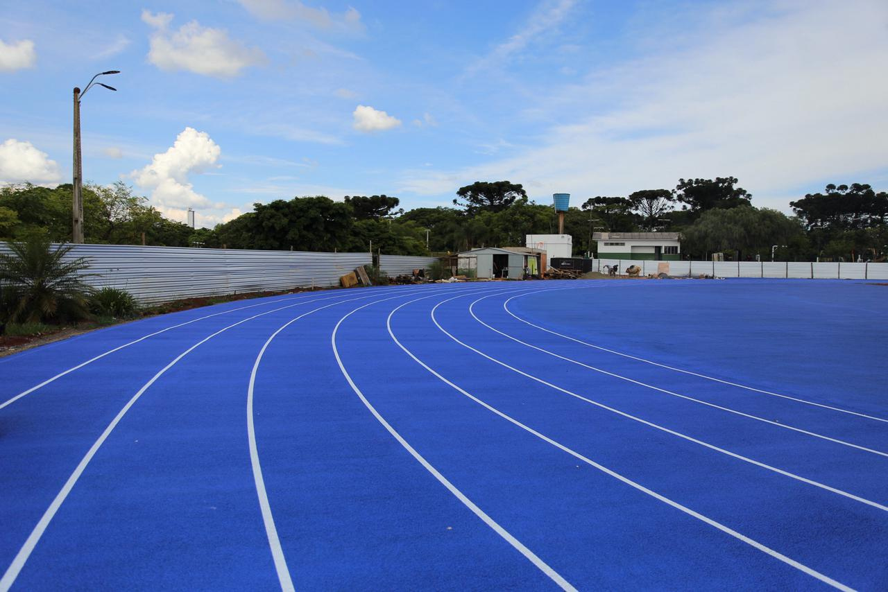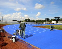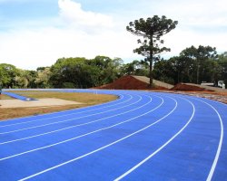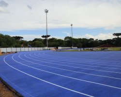O atletismo dos Jogos Abertos de Santa Catarina terá uma pista novinha em folha, no Complexo Esportivo Verdão, em Chapecó. A pista foi pintada de azul e nesta sexta-feira (14), recebeu a pintura das raias, que tem 400m. A largura da pista é de dez metros.