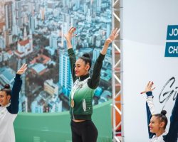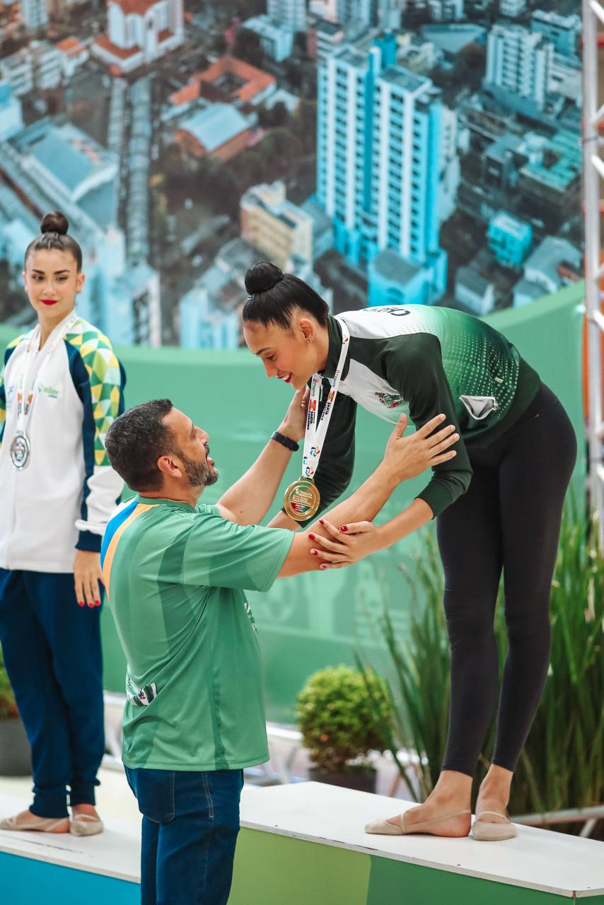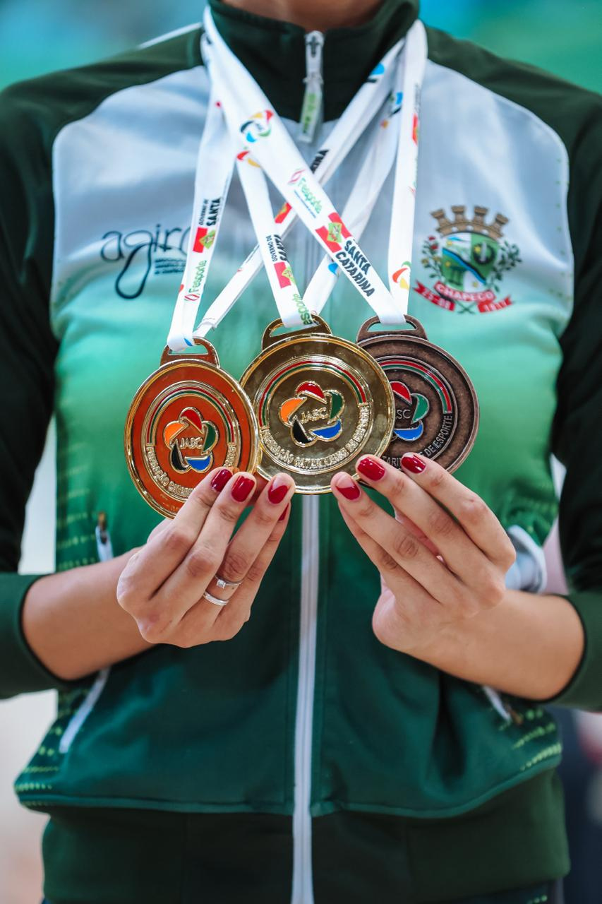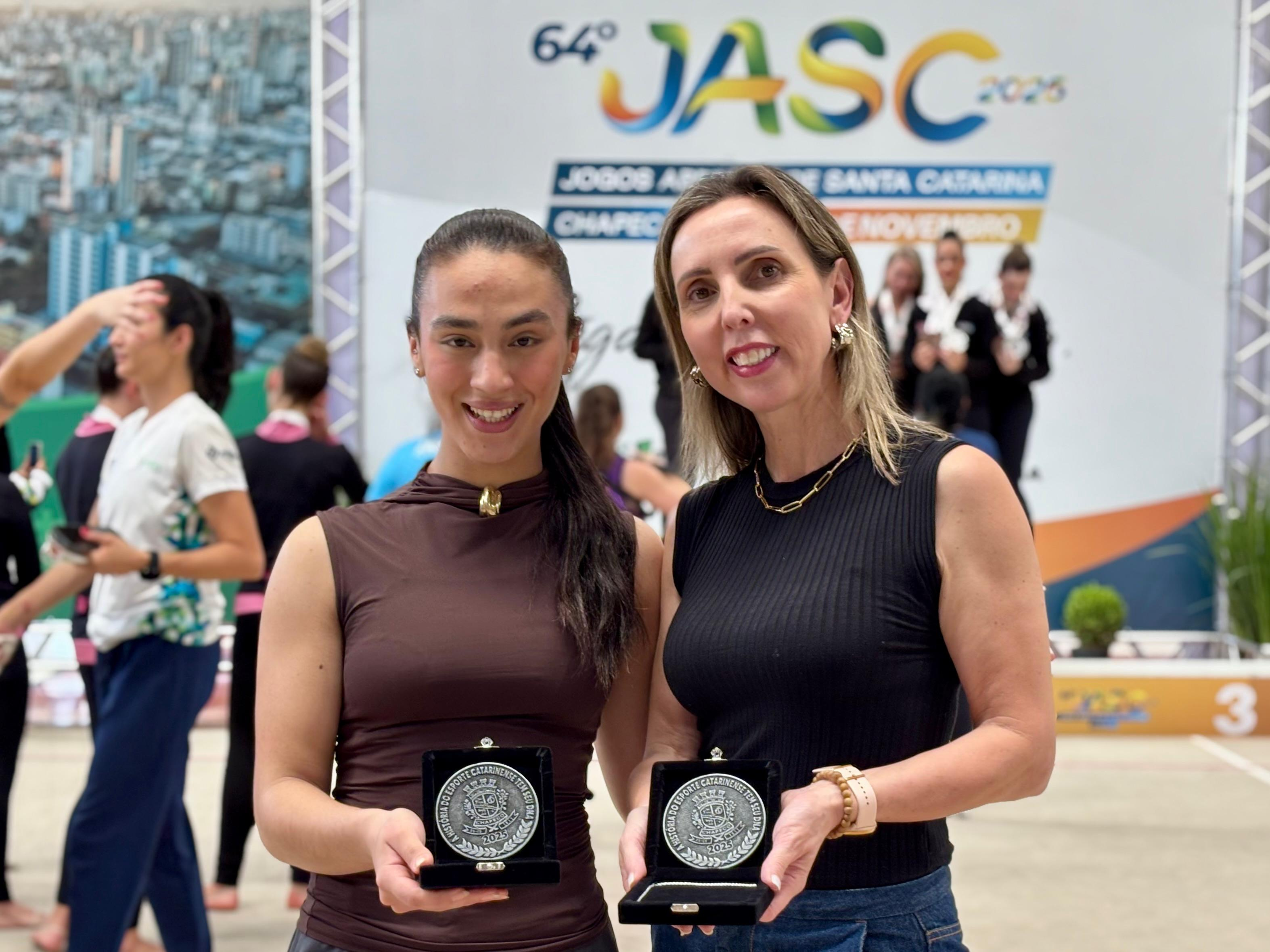 Outra agraciada com a medalha foi Daniela Zanini, que foi atleta e técnica da equipe. Estou muito feliz pelo reconhecimento. Disputei meu primeiro JASC em 1988, ganhei medalha em 1991, em Chapecó, depois fui técnica da base e do rendimento por mais de 20 anos, até 2023. Fiquei muito grata esse mérito veio com muito esforço, valorizando quem é prata da casa, disse Daniela.