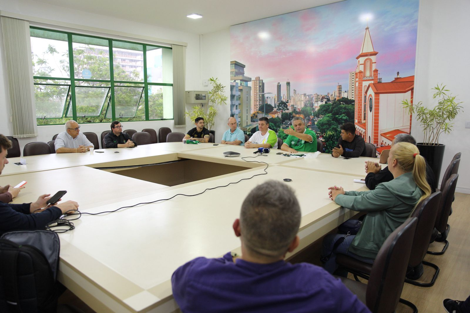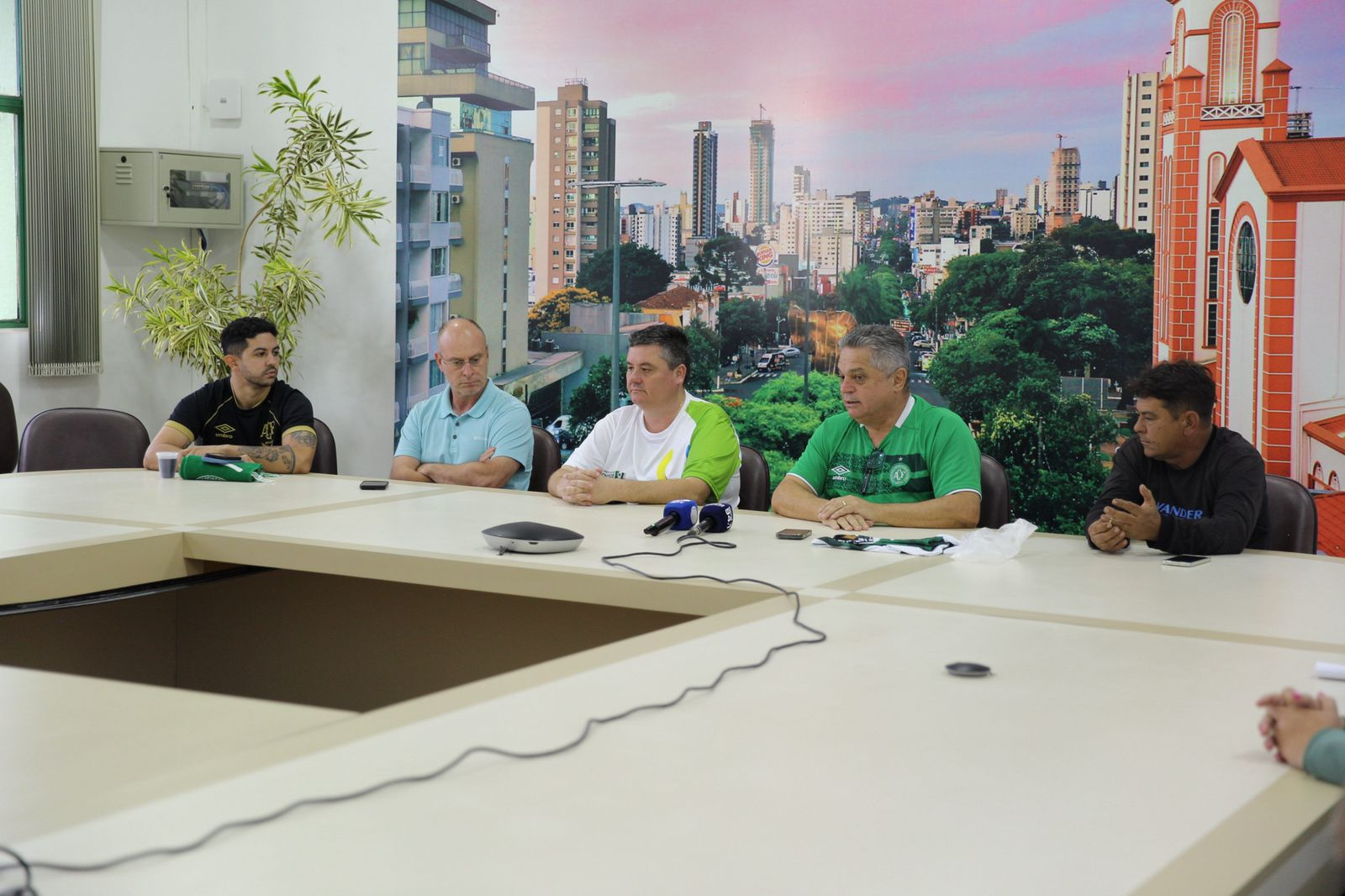 Para isso o prefeito de Chapecó, João Rodrigues, e o vice-prefeito e presidente da Comissão Central Organizadora dos JASC, Valmor Scolari, acompanhados do presidente da Chapecoense, Alex Passos, realizaram uma reunião com representantes das torcidas organizadas Guerreiros do Verdão e Barra da Chape, além da imprensa, na Prefeitura.