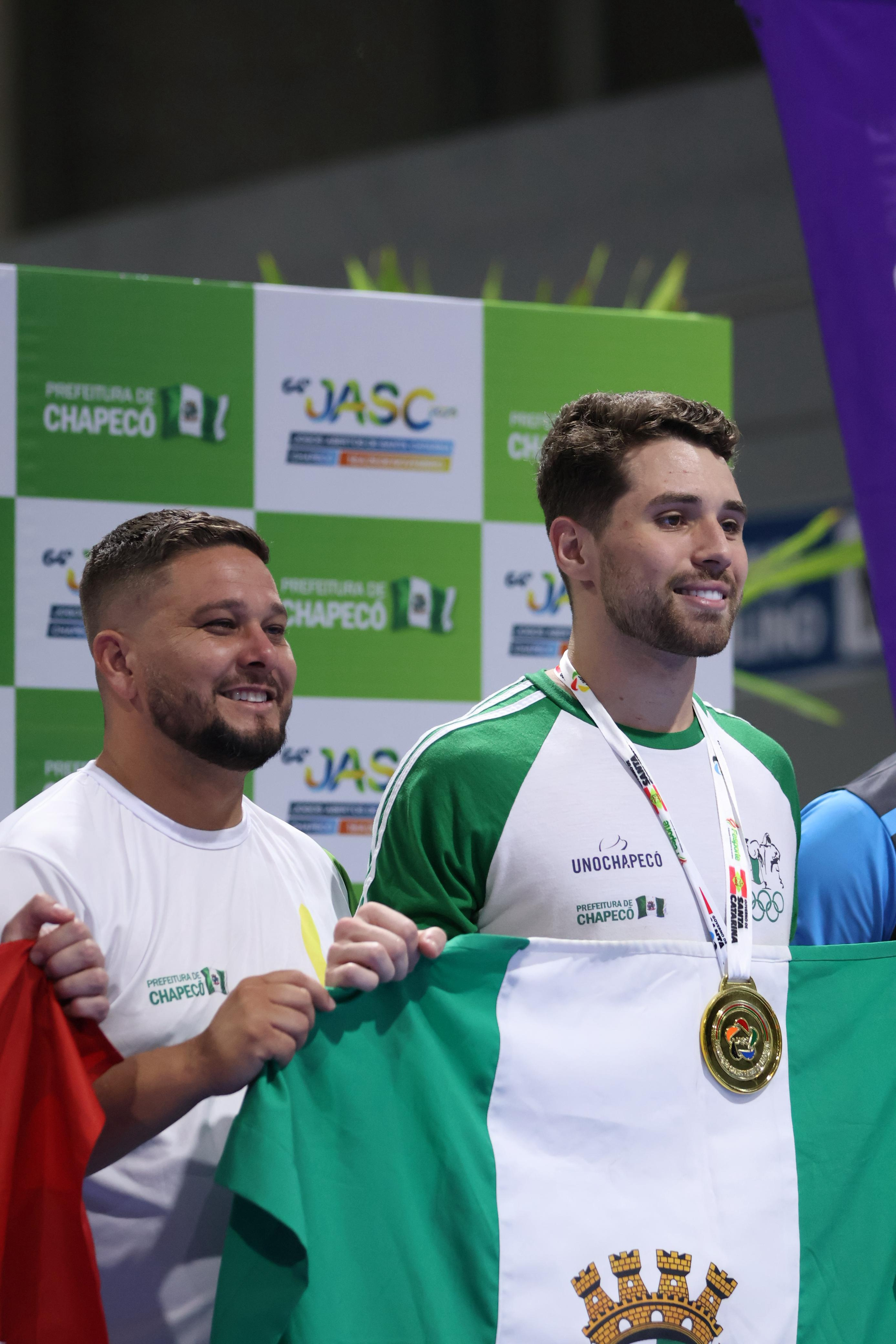 A modalidade de Karatê de Chapecó conquistou Bronze por equipes e o Troféu de Campeão Geral no masculino, nos Jogos Abertos de Santa Catarina (JASC). Um dos destaques da equipe foi Marco Antônio dos Anjos, Ouro na categoria Open. Ele era praticamente certeza de medalha na disputa, pois já foi tricampeão brasileiro em 2015, 2017 e 2018, campeão Sul-Americano em 2019, bicampeão Pan-Americano em 2018 e 2019, campeão Pan-Americano Universitário em 2024 e sétimo lugar no Mundial de Budapeste (Hungria).
