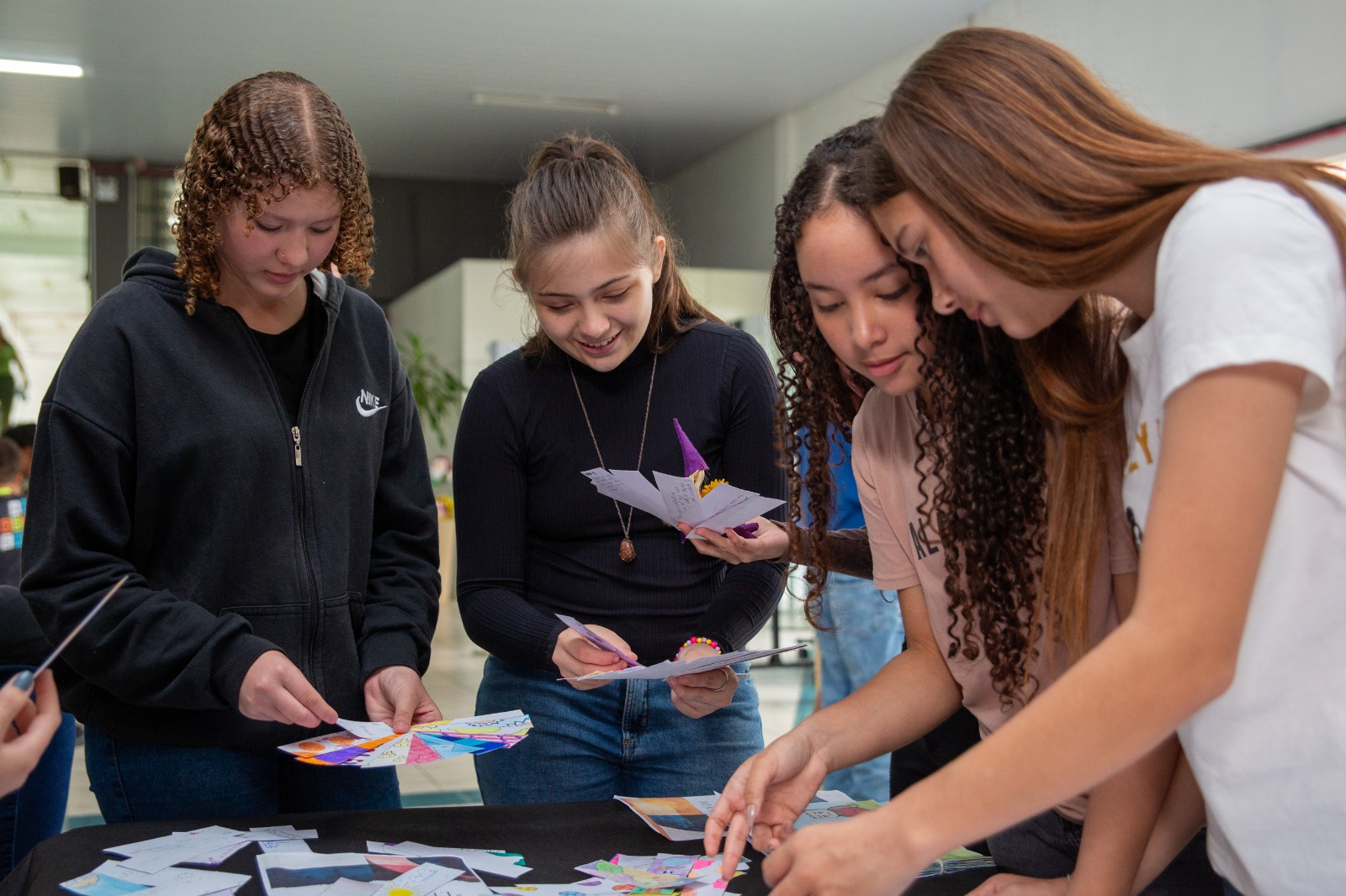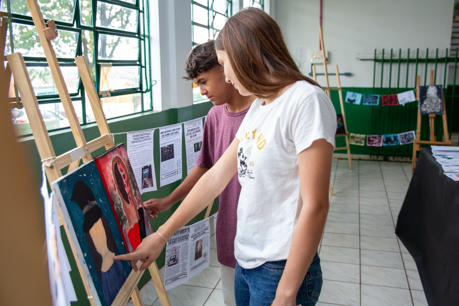 As atividades envolveram turmas do 6º ao 8º ano, nos componentes curriculares de arte, língua portuguesa e língua inglesa, além de ações do projeto Clube da Leitura, promovido na sala EITC, sendo mediado pelas professoras Djúlia Laís Zilk, Daniele Klein, Gesieli Raquel Schonberger e Keila Orso.