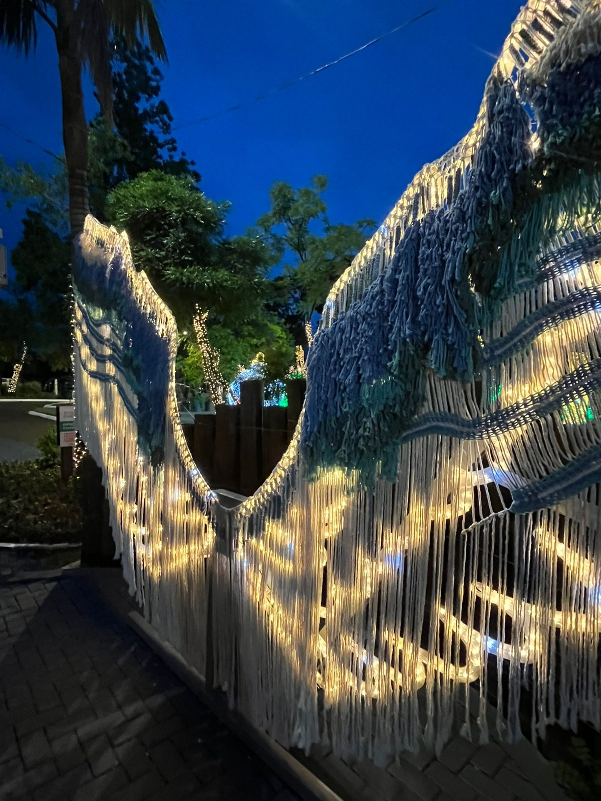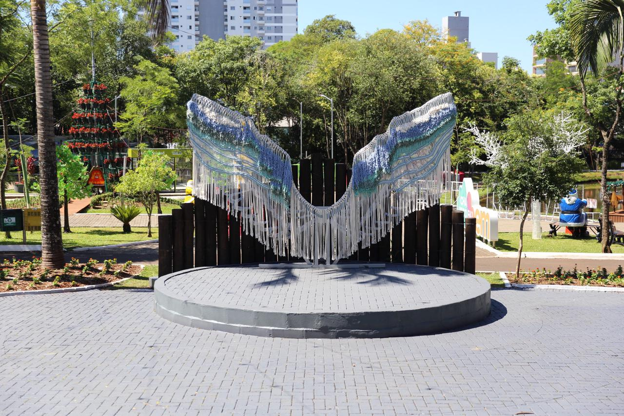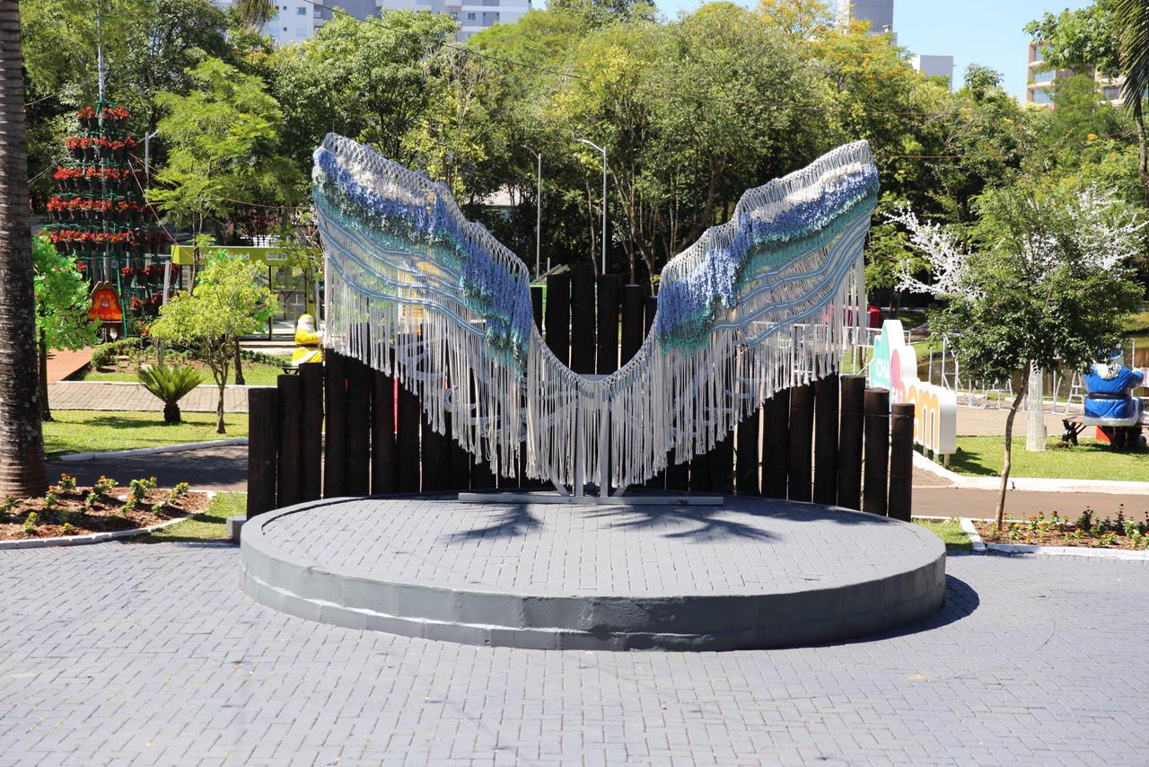 Uma casa decorada com 1,1 mil peças de crochê uma estrutura de asas com seis metros de largura, feitas em macramê, são algumas das novidades da decoração natalina do Ecoparque de Chapecó.