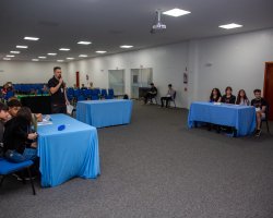 A Prefeitura de Chapecó, por meio da secretaria de Educação, realizou as finais do English Game Show, uma competição que, além de incentivar o estudo da Língua Inglesa, busca promover a socialização entre alunos e professores, ampliar situações práticas de uso do idioma e estimular a curiosidade e a busca por novos conhecimentos.