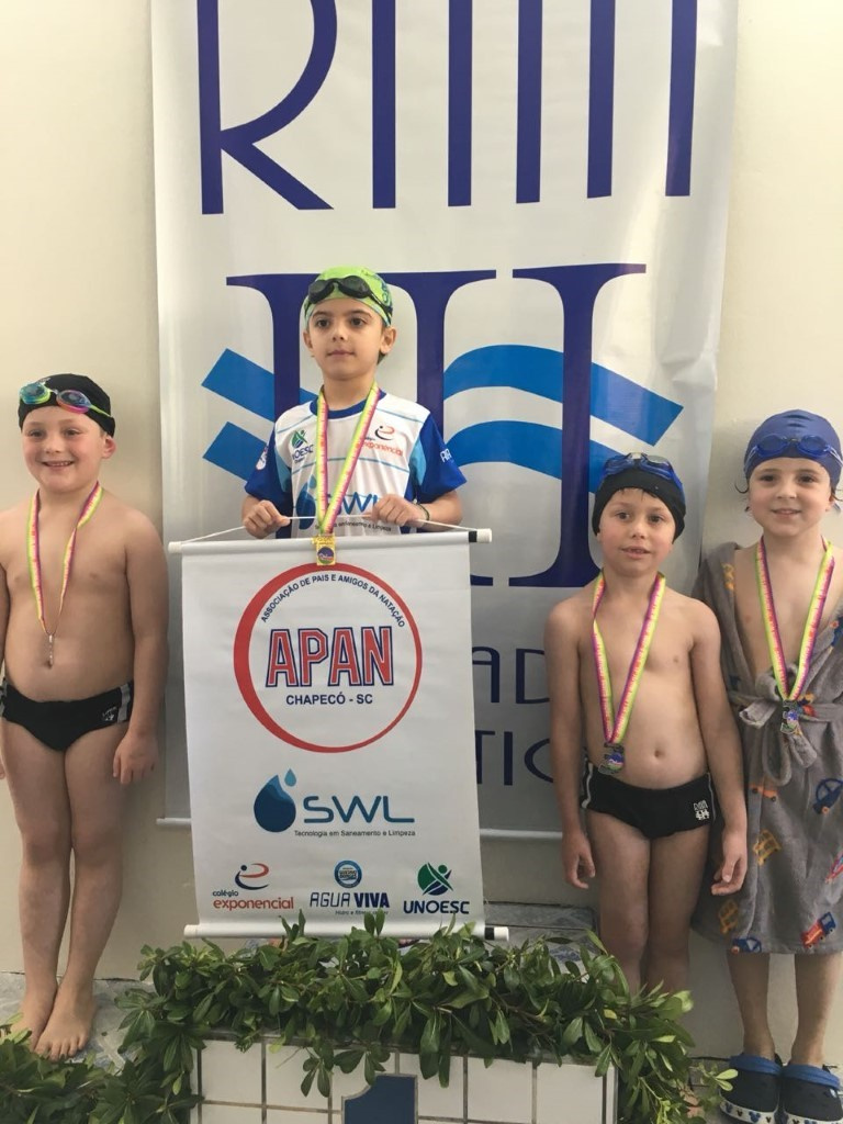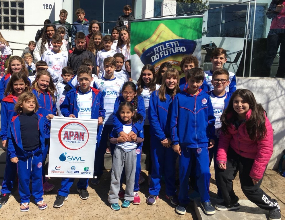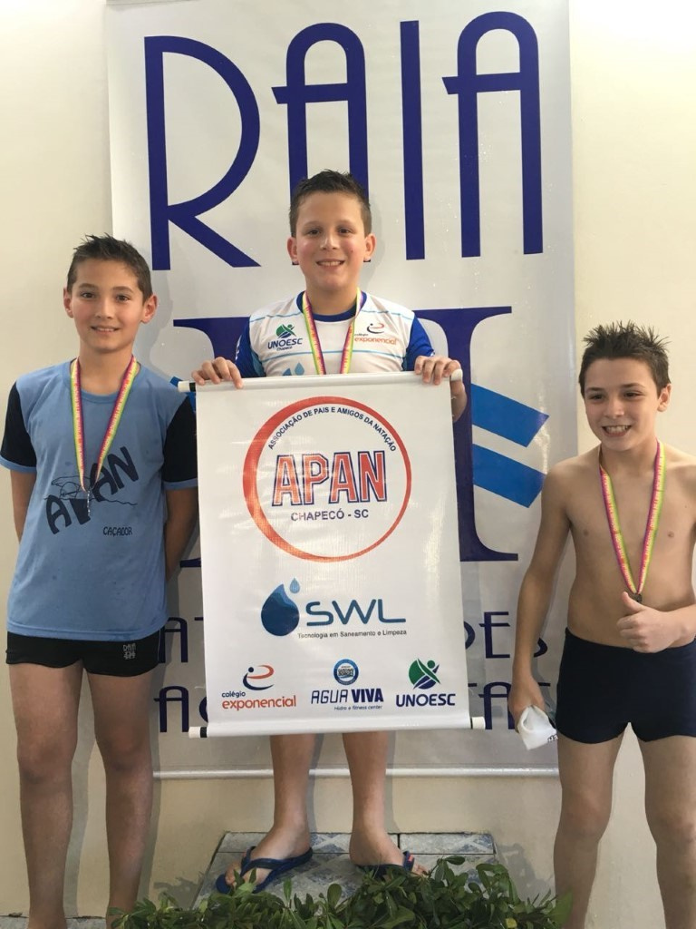 No sábado (25) a equipe de natação da APAN - UNOESC /Colégio Exponencial/SWL/ Água Viva participou do 33º Regional Raia 3 de Natação, na cidade de Caçador Santa Catarina. Trinta e oito nadadores, destes, 19 alunos do Projeto Atleta do Futuro (PAF), núcleo da Academia Água Viva, desenvolvido pela Administração Municipal, por meio da Secretaria de Juventude, Esporte e Lazer, conquistaram 50 medalhas: 27 de ouro, 12 de prata e 11 de bronze. O principal objetivo da APAN nessa competição é revelar novos atletas para integrar a equipe principal.
