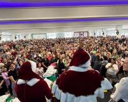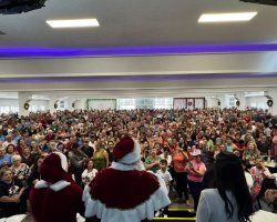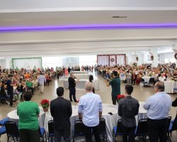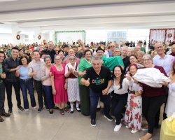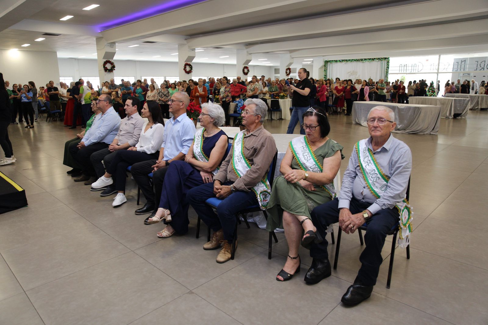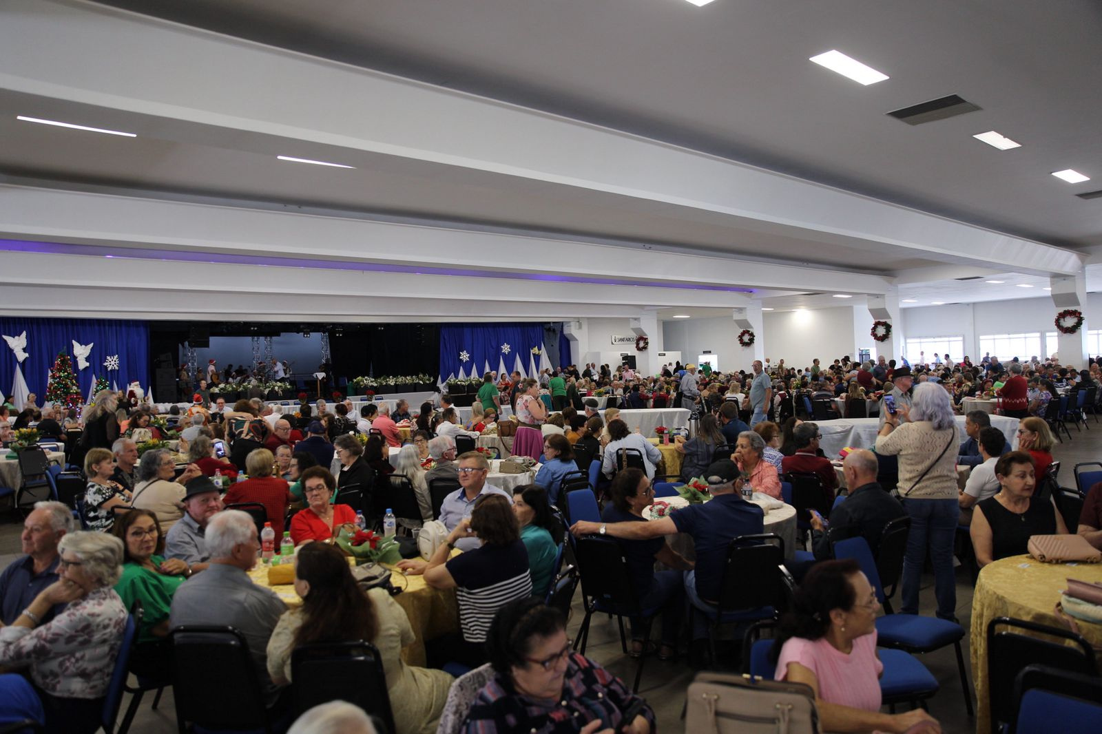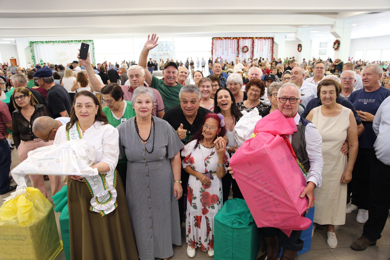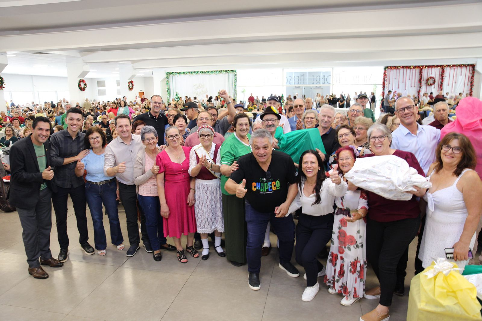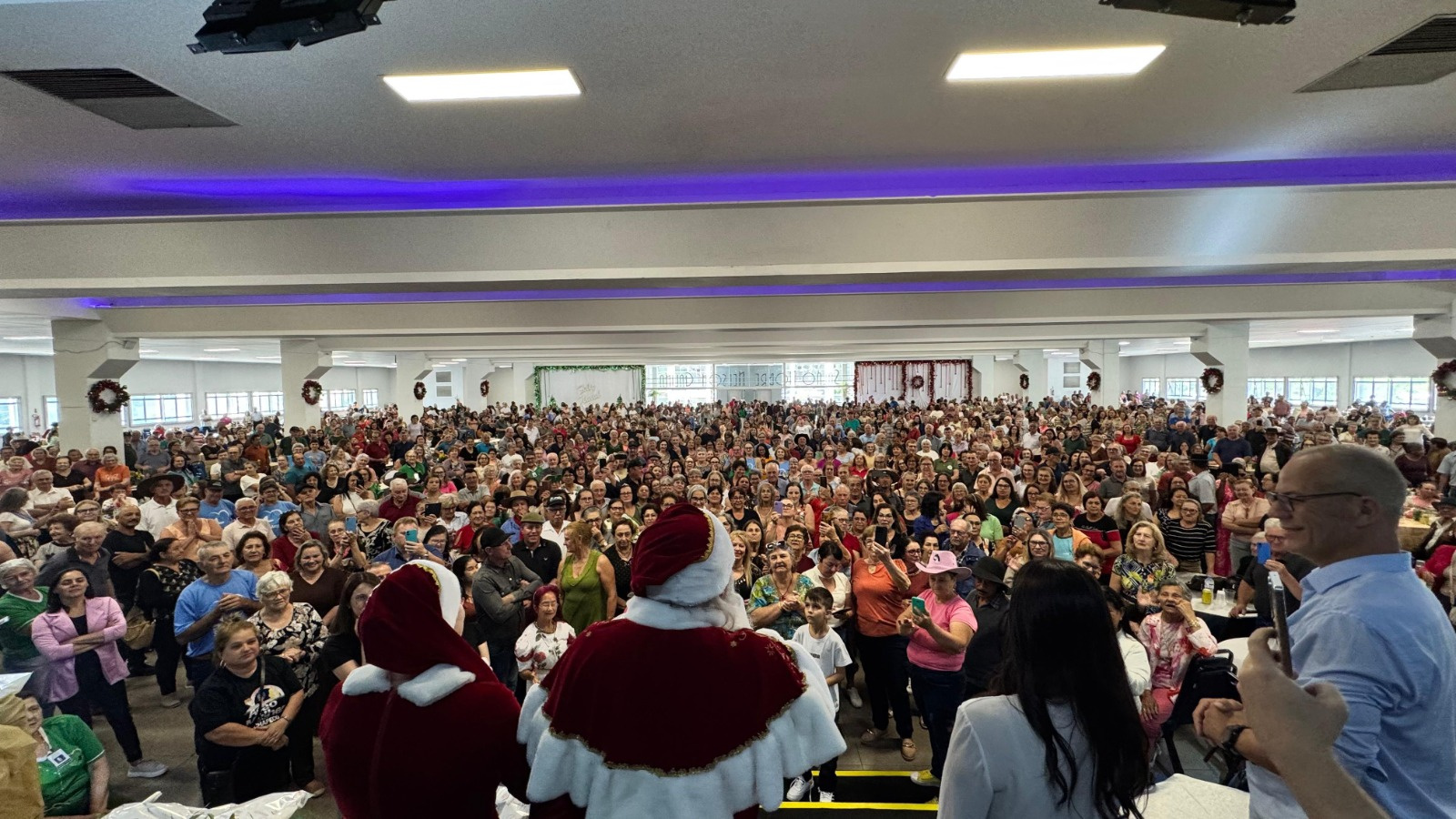 A Prefeitura de Chapecó, por meio da secretaria da Família e Proteção Social, promoveu nesta quinta-feira (11) a tradicional Festa de Encerramento do Ano dos Grupos de Idosos, reunindo mais de 60 grupos e um total de 3 mil participantes para um dia de celebração, integração e alegria. O evento contou com uma programação diversificada que começou com um momento de fé e gratidão, entrega de presentes, seguido de almoço, presença do Papai Noel e uma matinê.