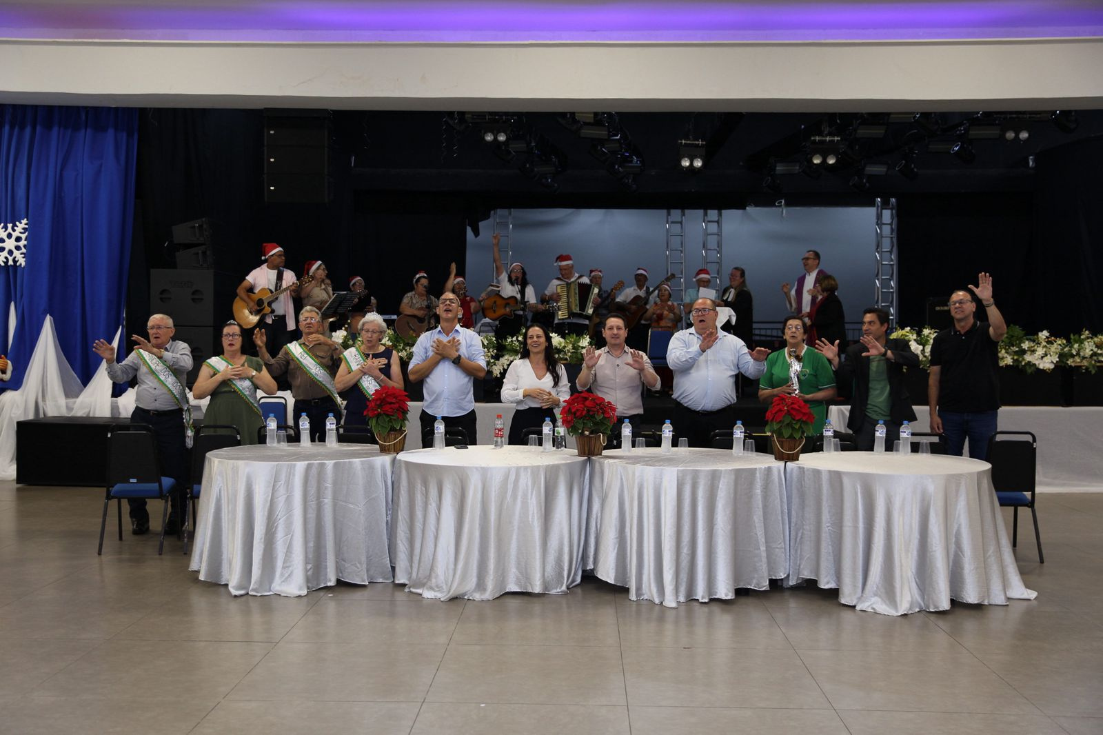 A presidente da diretoria-geral dos Idosos, Claudina Techio, explicou que durante o evento de encerramento das atividades do ano, foram entregues a todos os grupos um presente adquirido por meio do projeto Sons de Vida, com recursos do Fundo Municipal da Pessoa Idosa, sendo uma caixa de som e microfone, um jogo de bingo, baralhos e dominós para todos os grupos. São itens importantes para os grupos, pois precisam para as atividades e encontros que realizam nos bairros. Agora todo grupo vai ter um equipamento bom para realizar suas festividades, comentou.