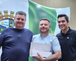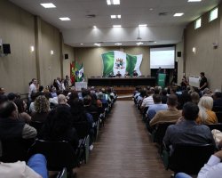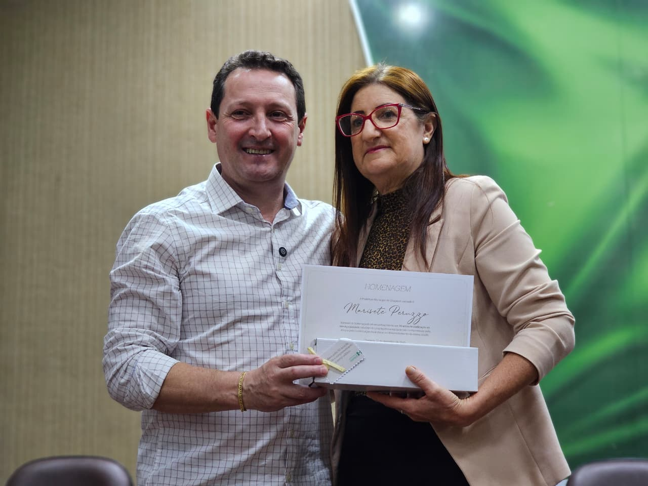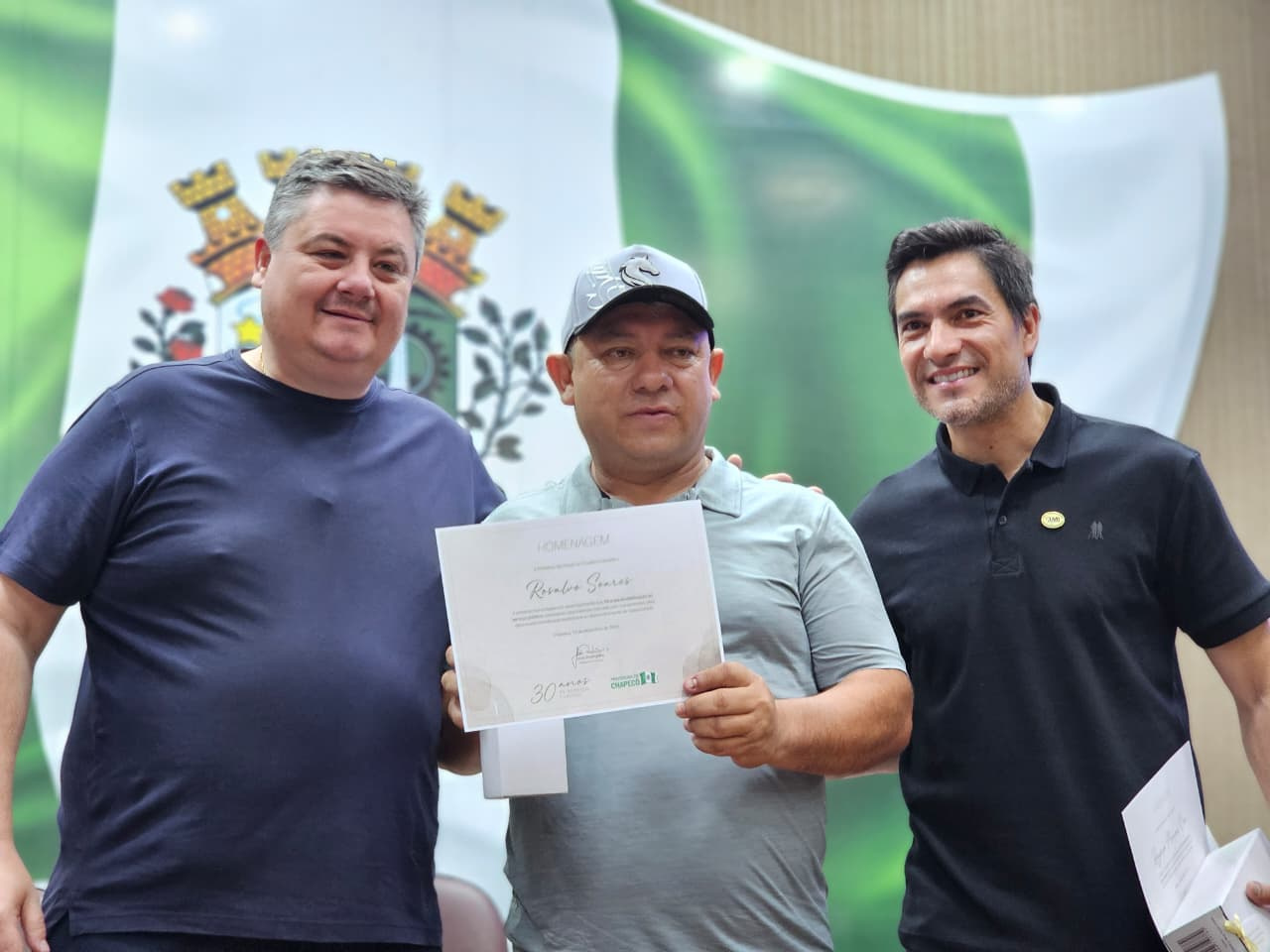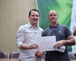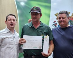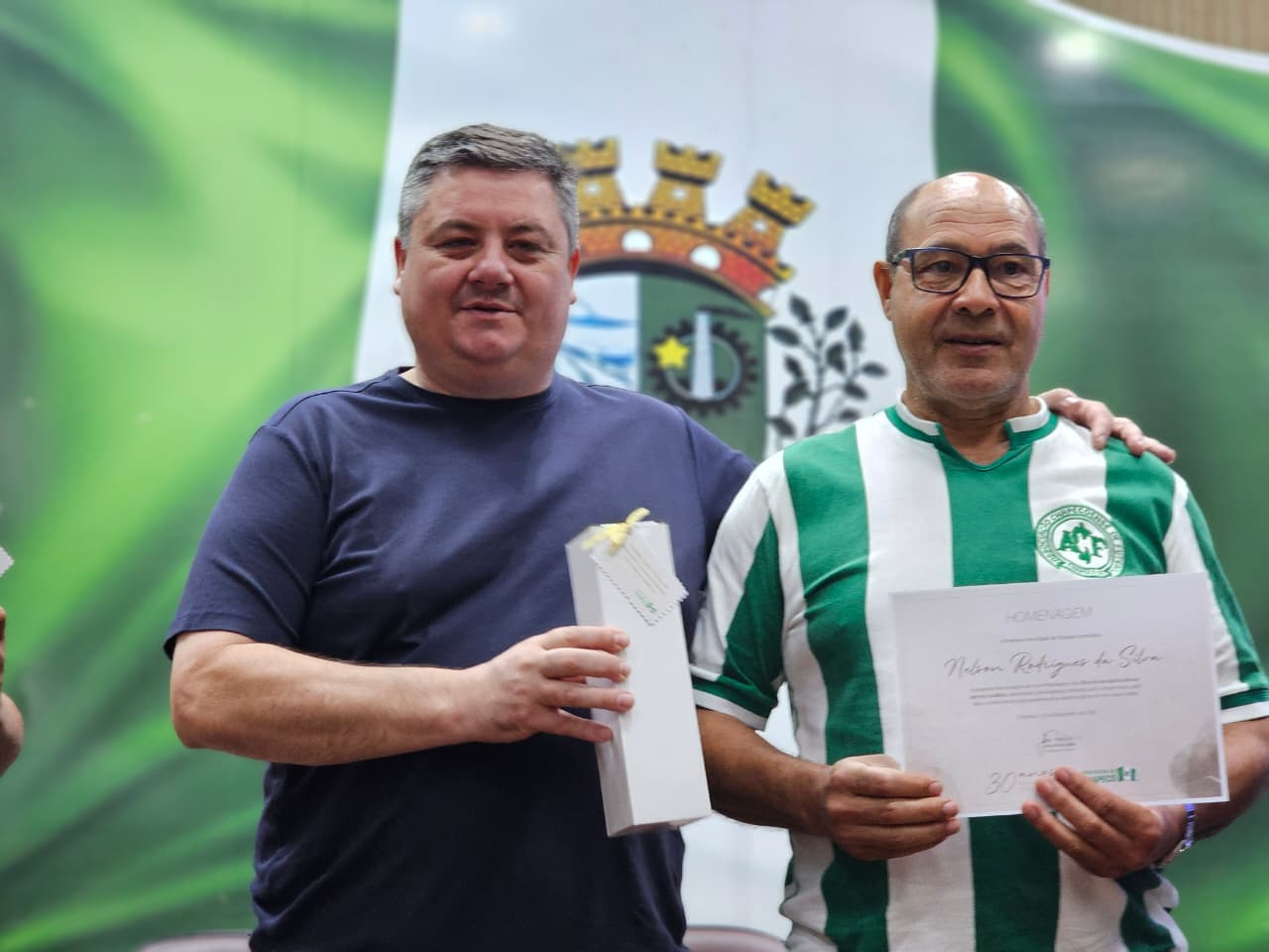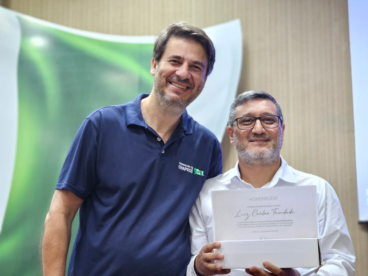 O presidente da Câmara de Vereadores, Claimar de Conto foi um dos homenageados e falou em nome dos colegas. Cada um aqui tem uma história de trabalho nesses 30 anos. Desde 1995 tivemos um período de transformação do nosso município, com quatro mandados do prefeito João Rodrigues. Tivemos seis Jogos Abertos, com a recente conquista de campeão geral. Saímos de 140 mil habitantes, para 282 mil habitantes. Éramos mil servidores, agora são sete mil. Cada um deu sua contribuição. Nós temos o dom de servir a população de Chapecó, disse Claimar.