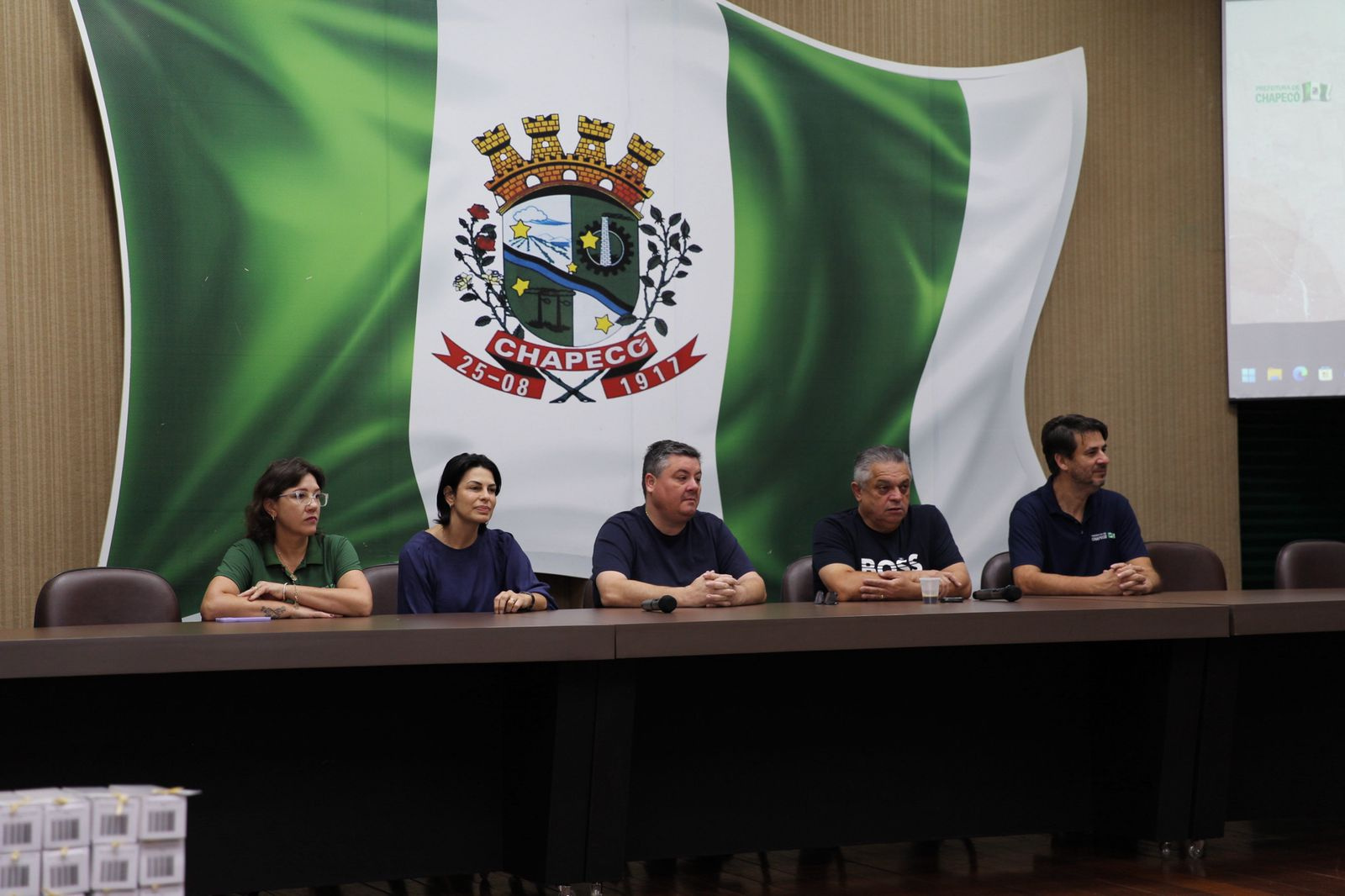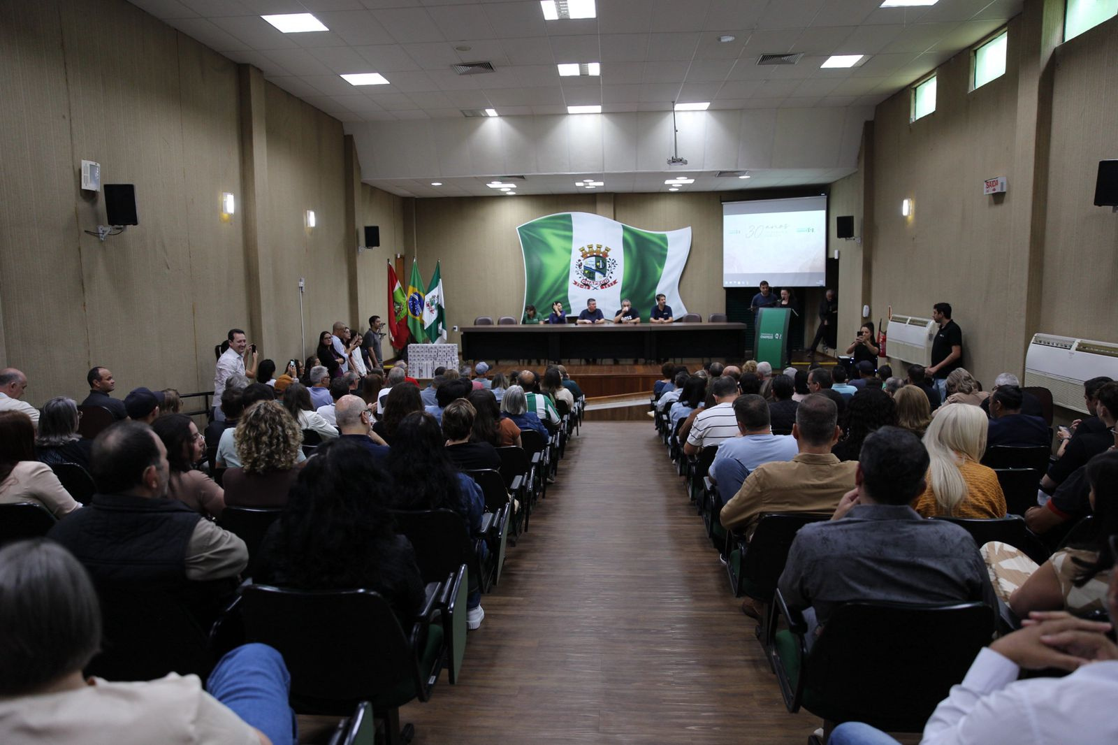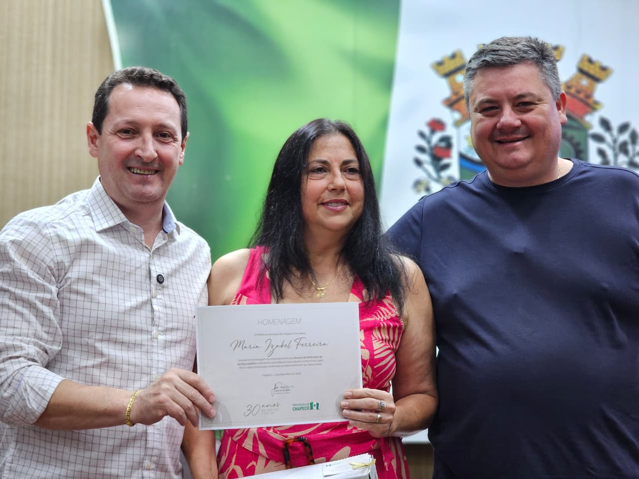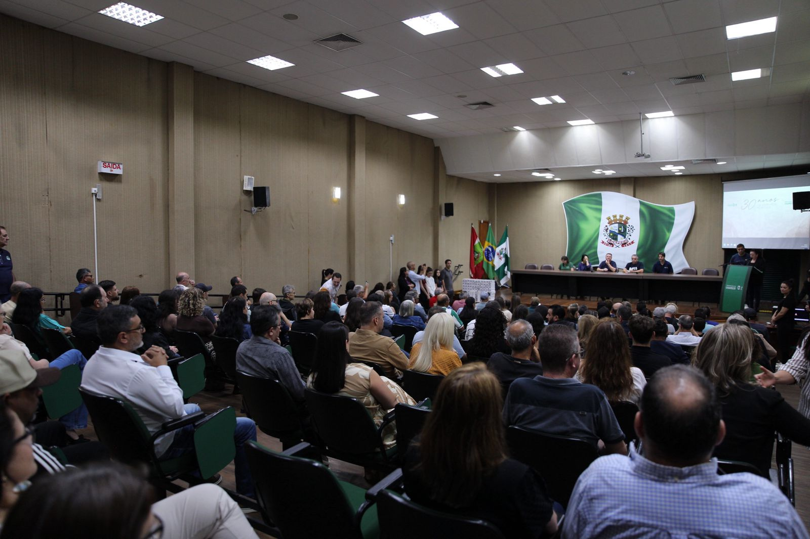 A Prefeitura de Chapecó, por meio da secretaria de Administração, realizou na manhã desta sexta-feira (12) o Jubilados 2025, uma homenagem aos servidores municipais com 30 anos de serviço público. Foram 92 pessoas que participaram do ato no auditório da Prefeitura e receberam um certificado e uma garrafa térmica de água.