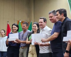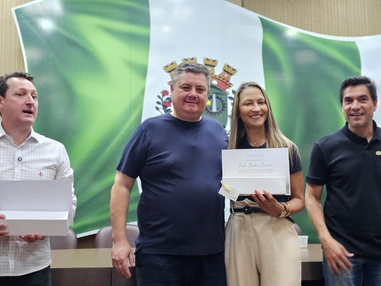 Também estiveram presentes no ato o vice-prefeito, Valmor Scolari, o secretário de Administração, Clodoaldo dos Santos; além de outros secretários, vereadores, servidores e familiares dos homenageados.