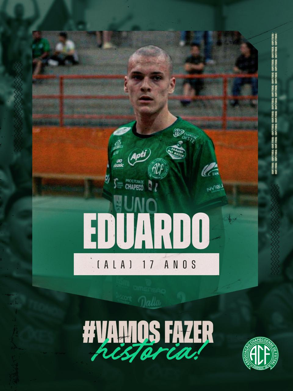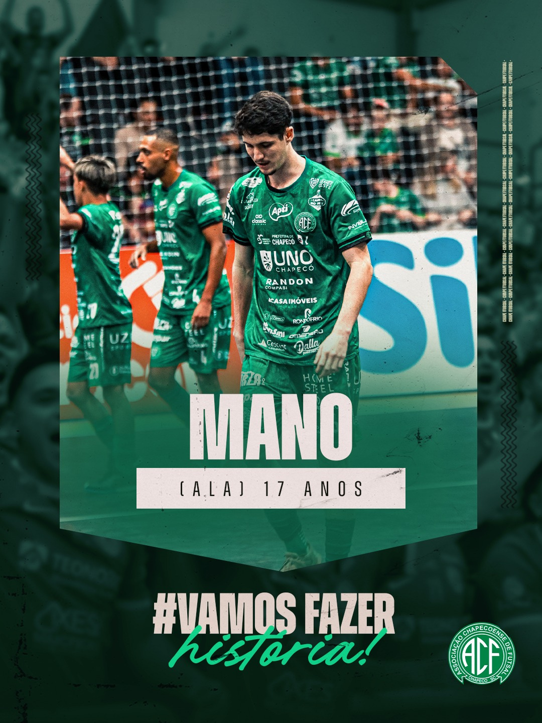 A Chape Futsal renovou o contrato de 13 atletas que atuaram pelo elenco adulto. Para o gol, estão confirmados Dudu, 20 anos, e Bolinha, 19. Para a função de fixo, continua João Camilo, 23. Para as alas, ficam o artilheiro do time na temporada, Kassula (27 anos), Jefe Seco (30), Ximba (19), Maranhão (23), Mano (19), Davi (18) e os gêmeos Eduardo e Lucas (17). Para a posição de pivô, Dudi, 31, e João Seco, 21, estenderam o vínculo.