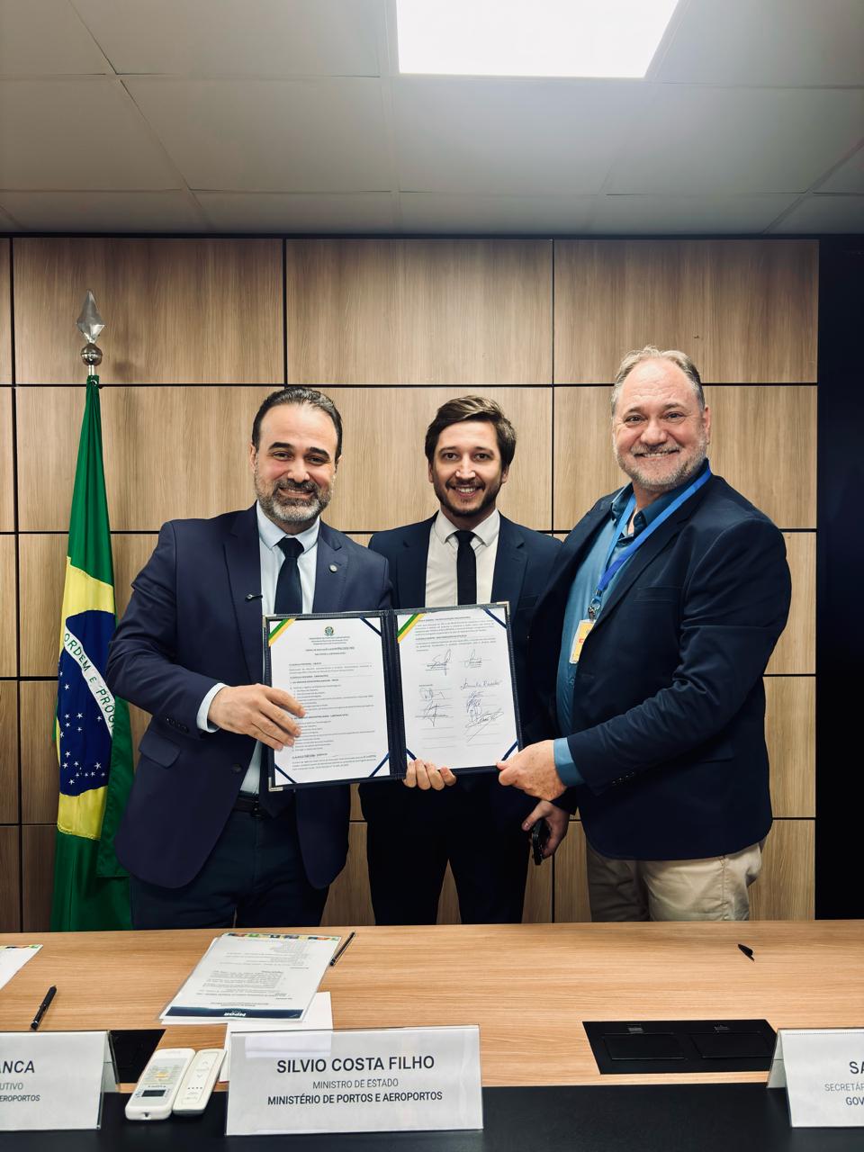 Entre os avanços anunciados, está a assinatura para a elaboração do projeto do Aeroporto de Chapecó, no valor estimado de R$ 3 milhões, passo fundamental para a modernização da infraestrutura aeroportuária, ampliação da conectividade regional e fortalecimento da economia, dos negócios e do turismo.