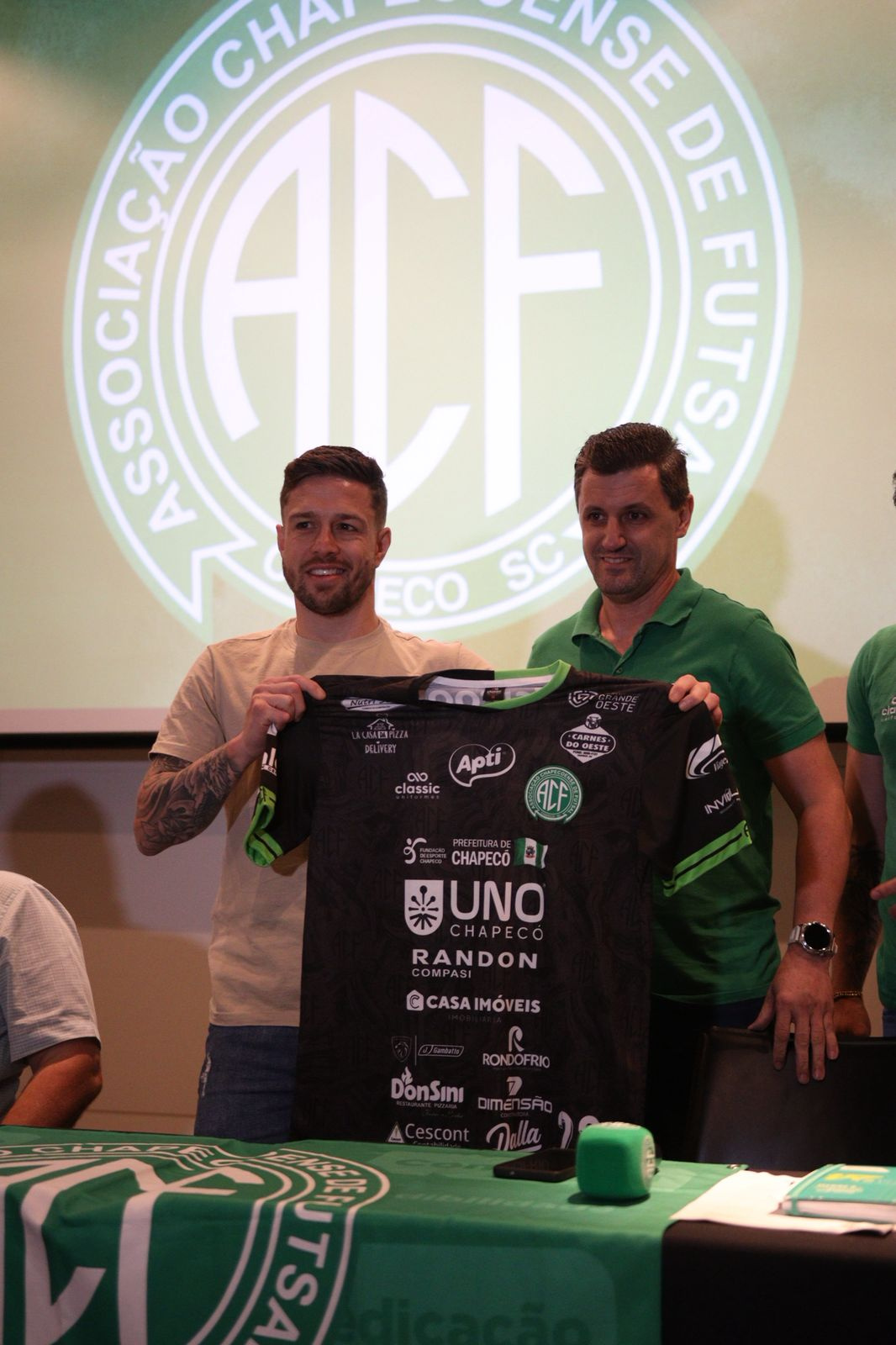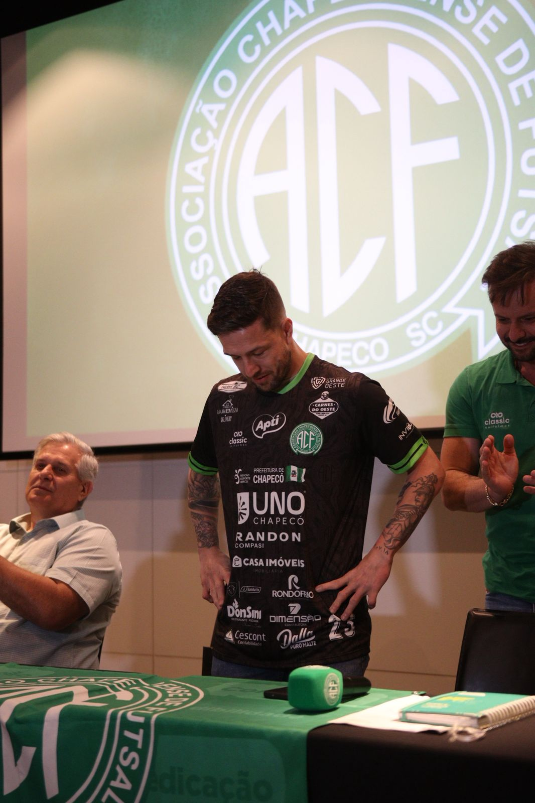 Gelson Dalla Costa, da Apti Alimentos, falou em nome dos patrocinadores. O empresário teve participação fundamental na vinda de Alê para Chapecó. Conversando com o Clayton, ele nos passou o desejo de trazer o jogador. A gente se alinhou com a diretoria do Atlântico, e estamos aqui apresentando o Alê. Ele vai se juntar ao um grupo bom que já temos. Muita coisa boa vai acontecer em 2026, disse.