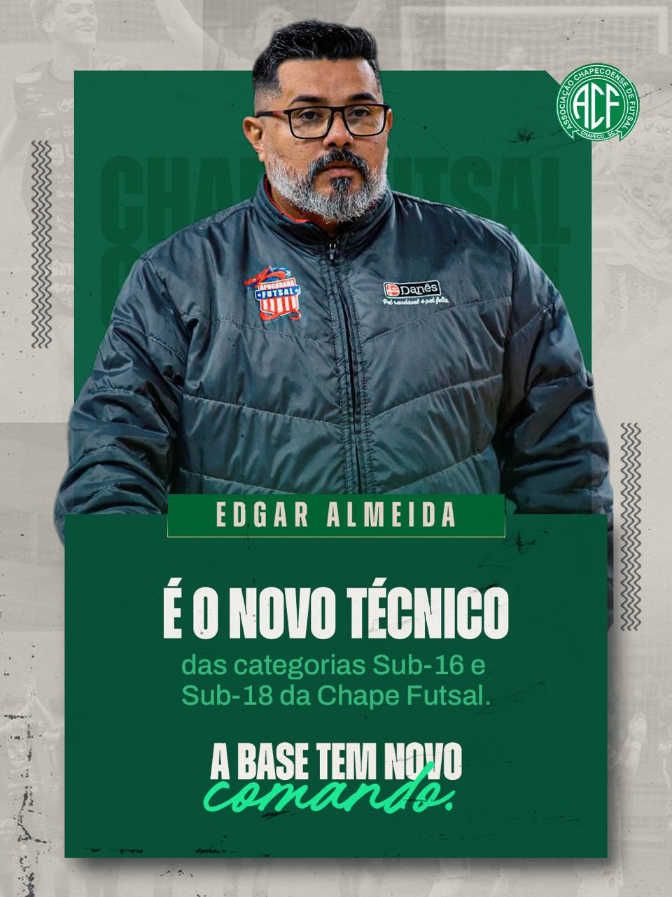 A Associação Chapecoense de Futsal passa a contar com um novo treinador para as categorias de base. Trata-se de Edgar Almeida, 44 anos. Ele irá dirigir as equipes sub-16 e sub-18 na temporada de 2026.