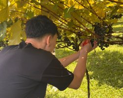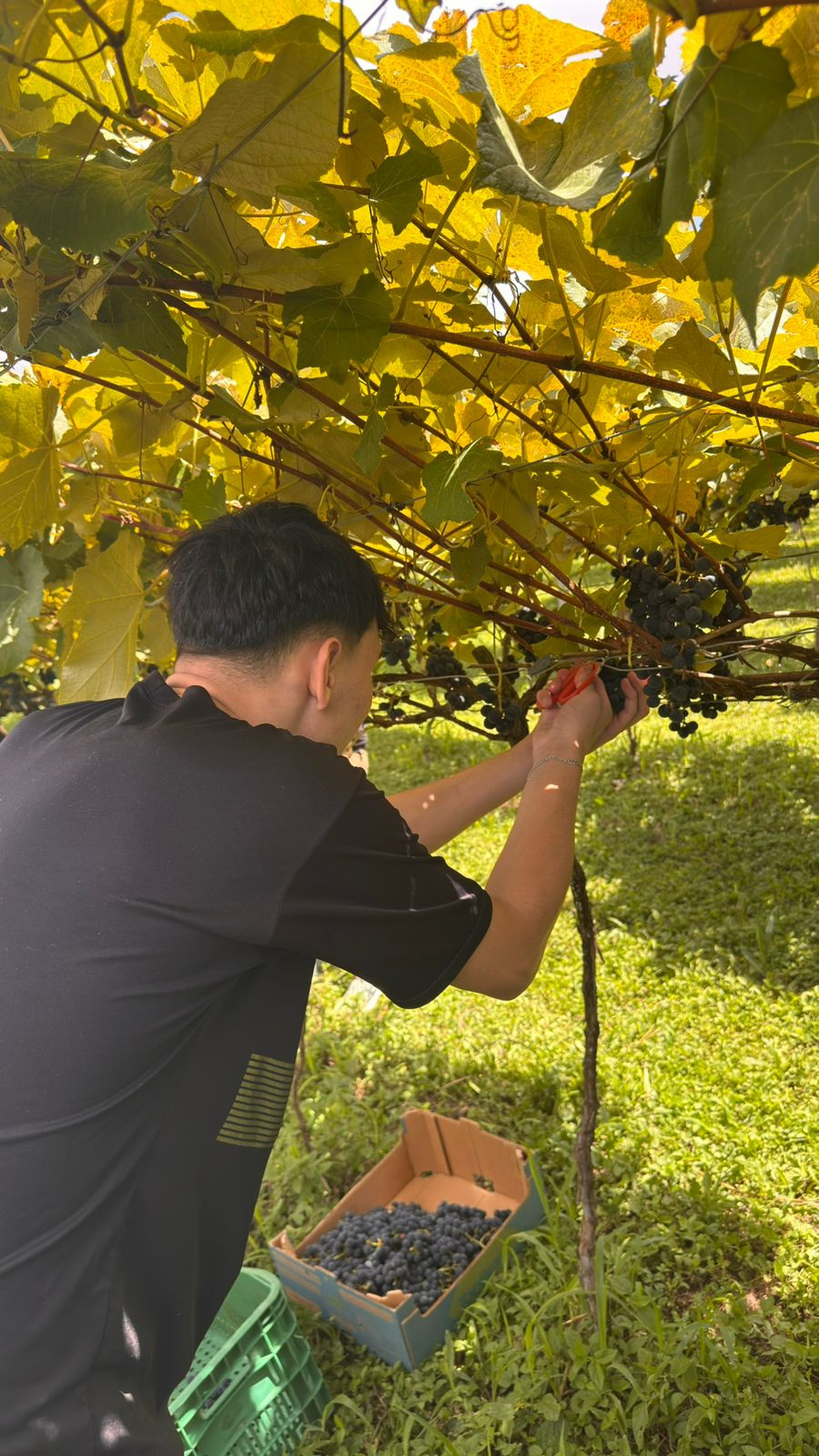 O proprietário dos parreirais, Paulo Munarini aproveitou o momento para compartilhar um pouco da história de sua produção, que acontece há quase 30 anos. A propriedade possui dois hectares onde são cultivadas nove variedades de uvas, e uma estimativa de produção anual de 20 mil quilos. A família Munarini relata que, todos os anos, como forma de agradecimento por mais uma safra produtiva promove ações solidárias como esta, oferecendo tardes de colheita às entidades do município, com as doações sendo destinadas aos usuários dos serviços socioassistenciais.