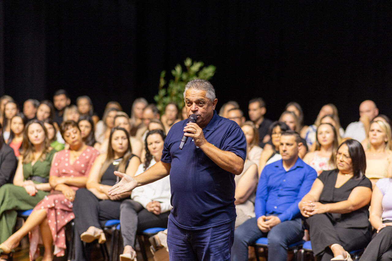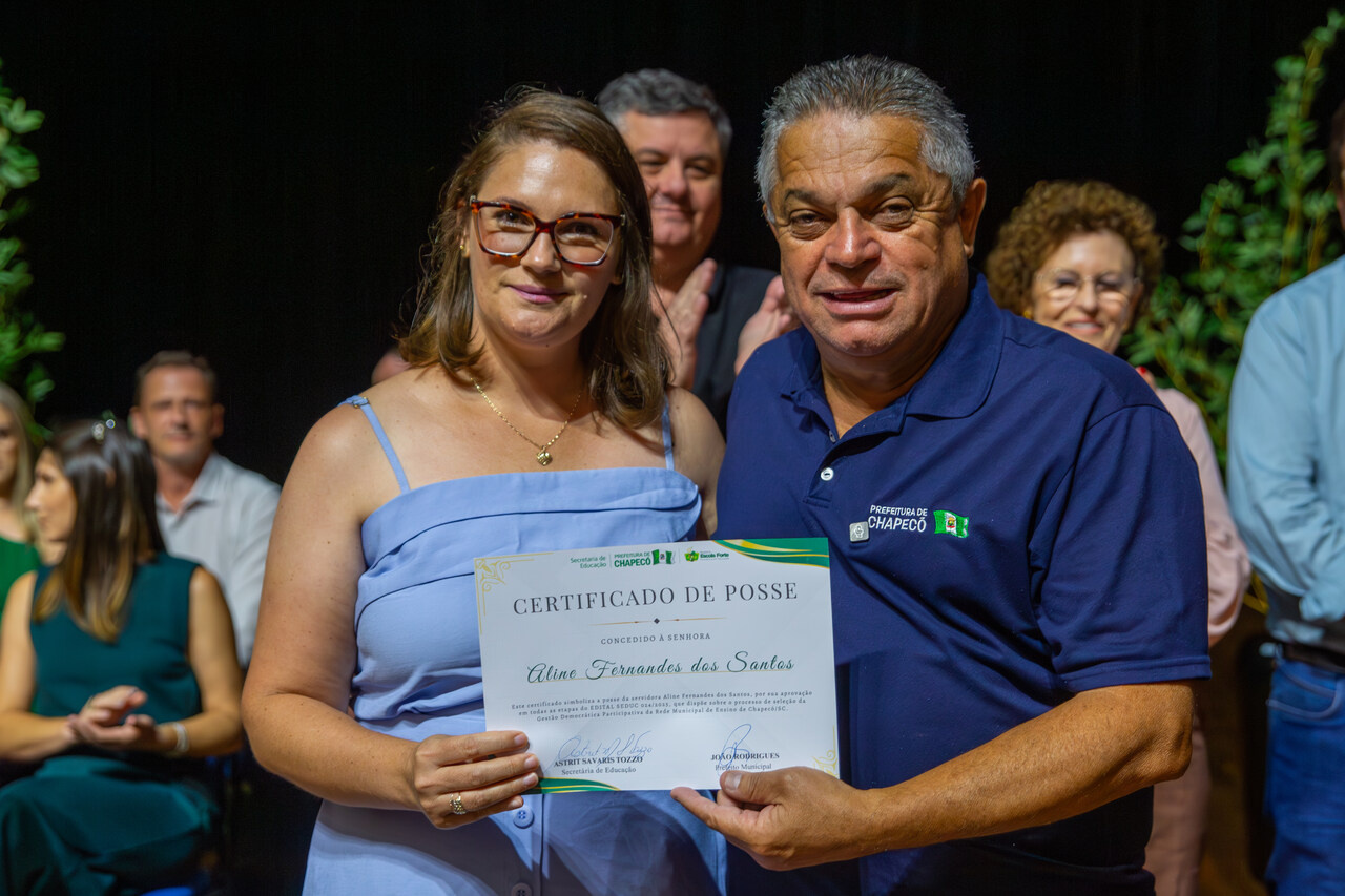 O prefeito João Rodrigues esteve presente no evento, parabenizando os gestores e agradeceu a dedicação dos profissionais. Ele destacou que a Prefeitura de Chapecó seguirá investindo e apoiando ações que fortaleçam o desenvolvimento de um trabalho de excelência e inovação na educação municipal. Chapecó se consolida como referência em gestão educacional para diversas cidades do Brasil. Os investimentos em escolas cívico-tecnológicas, na aquisição de materiais de qualidade e na construção de novas escolas, centros multiuso e centros de educação infantil têm ganhado destaque em nível nacional. Esses avanços só são possíveis graças a uma equipe qualificada e comprometida, formada por gestores, professores e servidores que caminham conosco na busca constante pela excelência educacional, afirmou o prefeito.