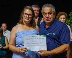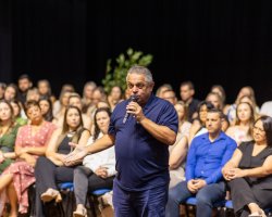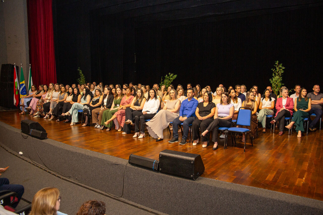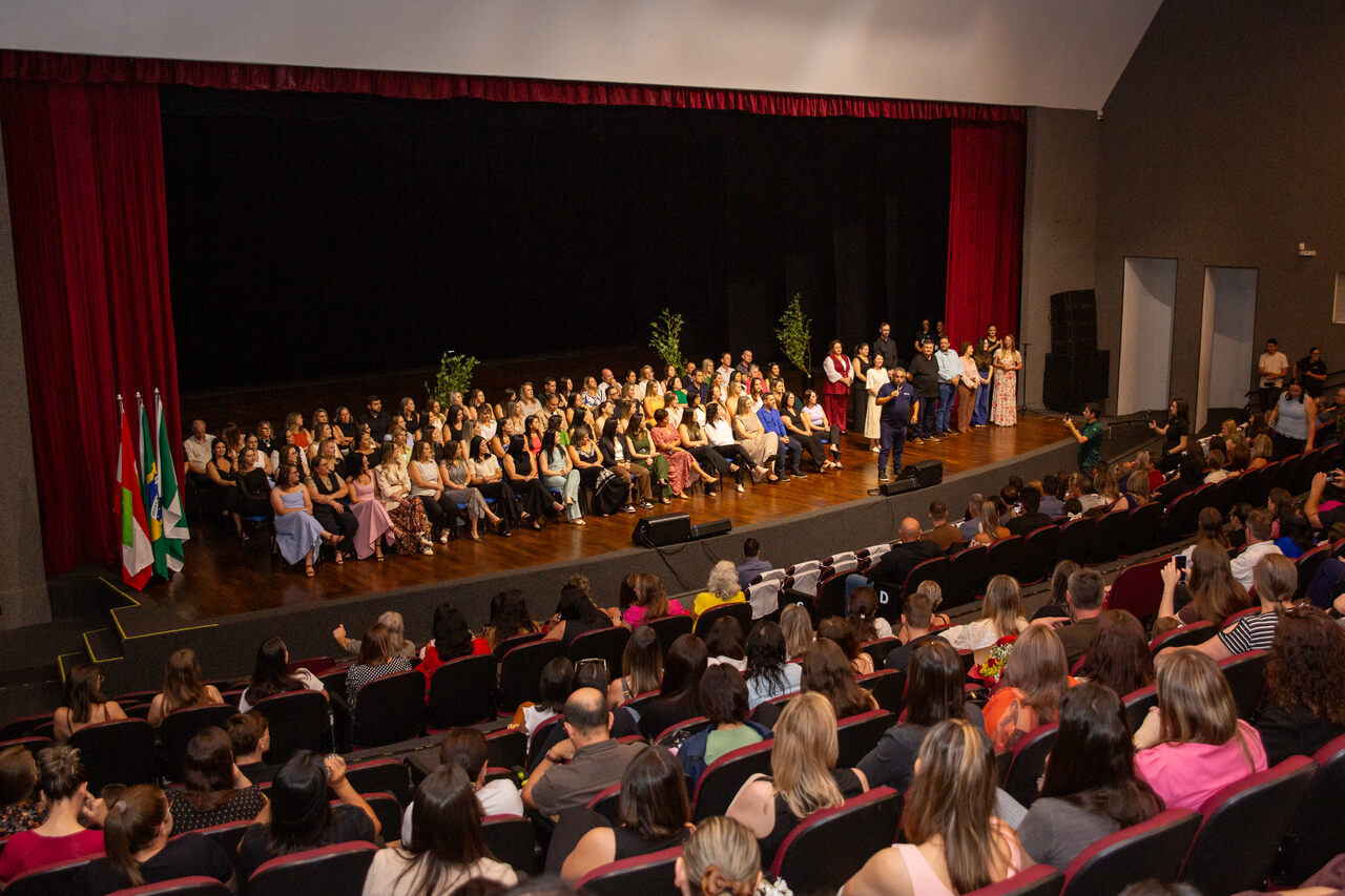 Na manhã desta quinta-feira (22) foi realizada no Teatro do Centro de Cultura e Eventos Plínio Arlindo De Nes, a cerimônia de posse de cerca de 85 gestores escolares da Rede Municipal de Ensino de Chapecó. Os profissionais atuarão em Escolas (EBM), Centros Municipais de Educação Infantil (CEIM) e Centros Tecnológicos de Inovação, Educação e Esporte no biênio 2026/2028.