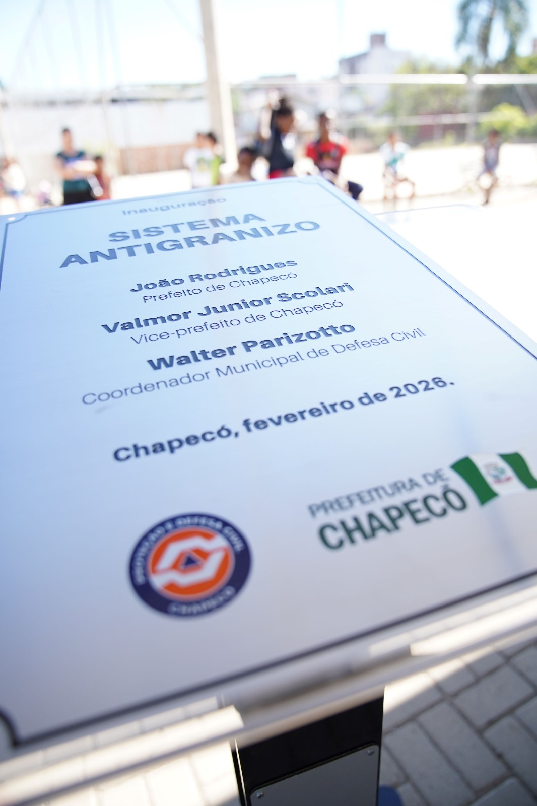 Nós vamos proteger as casas, as famílias, que sofriam com os telhados danificados quando tinha chuva de pedra. Estamos instalando este equipamento no bairro Efapi e também vamos instalar mais dois, outro no bairro Efapi e um no distrito de Marechal Bormann, onde tivemos mais de mil casas danificadas em 2022. Somente com o prejuízo naquela ocasião já paga o equipamento. E além disso traz mais segurança e tranquilidade para as famílias, que ficam protegidas. Em vez de entregar telhas depois do ocorrido, nós estamos inovando e protegendo a população., disse Rodrigues.