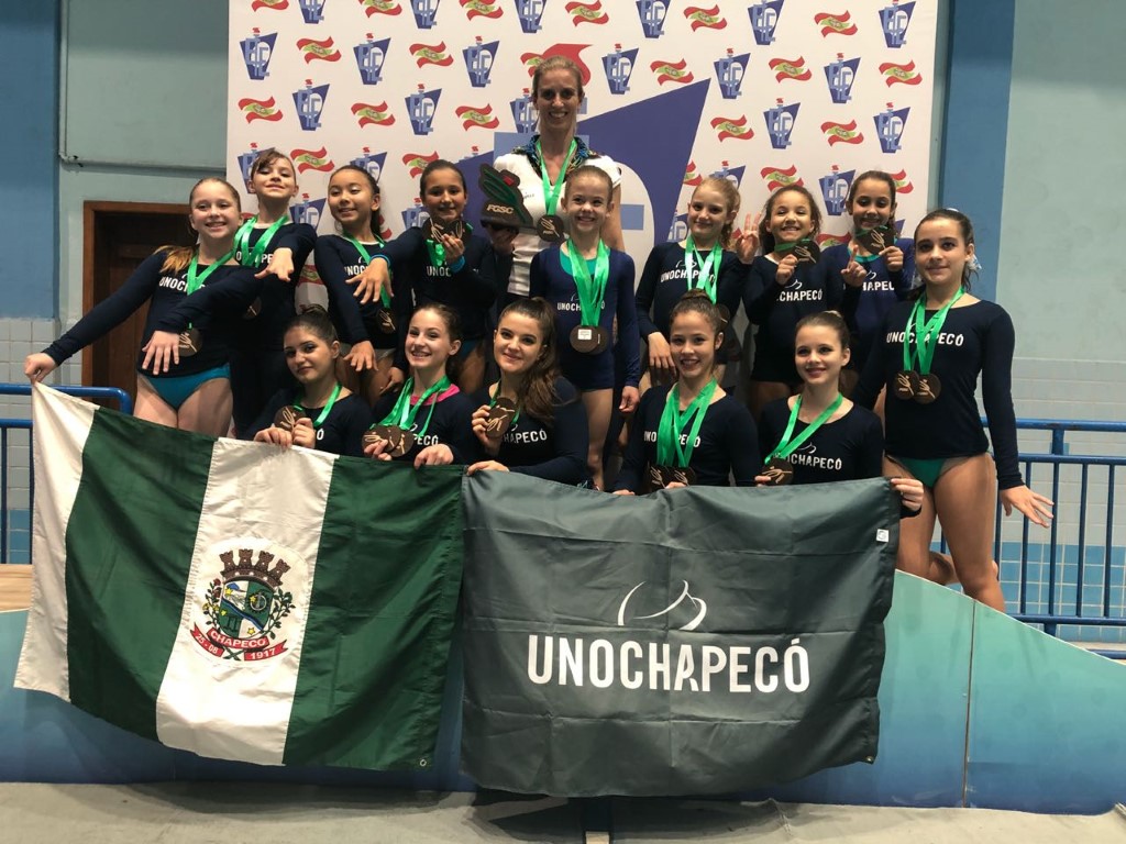 Participaram ginastas que já estão desenvolvendo esta modalidade, no Projeto Atleta do Futuro desenvolvido pela Prefeitura de Chapecó, por meio da Secretaria de Juventude, Esporte e Lazer do Município de Chapecó. As atividades são realizadas no ginásio da UNOCHAPECÓ, a partir dos 05 anos de idades.
