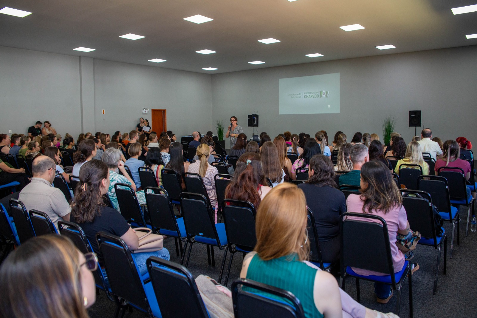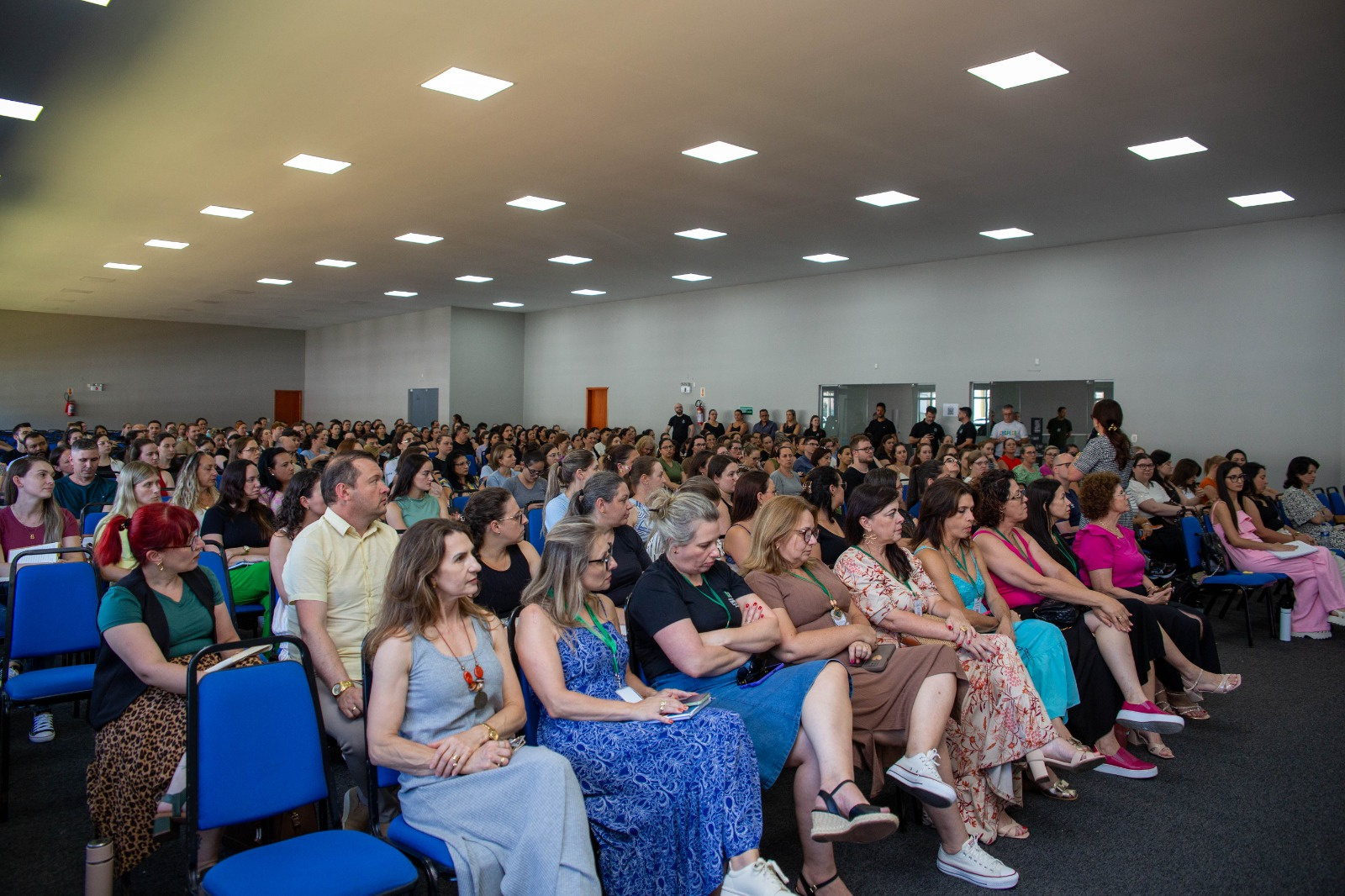 Na tarde desta sexta-feira (06), a Prefeitura de Chapecó, por meio da Secretaria de Educação, recepcionou cerca de 140 servidores públicos municipais que irão atuar como assistentes pedagógicos e auxiliares técnicos de educação nas escolas e nos centros de educação infantil da Rede Municipal de Ensino. O ato foi no Centro de Cultura e Eventos.
