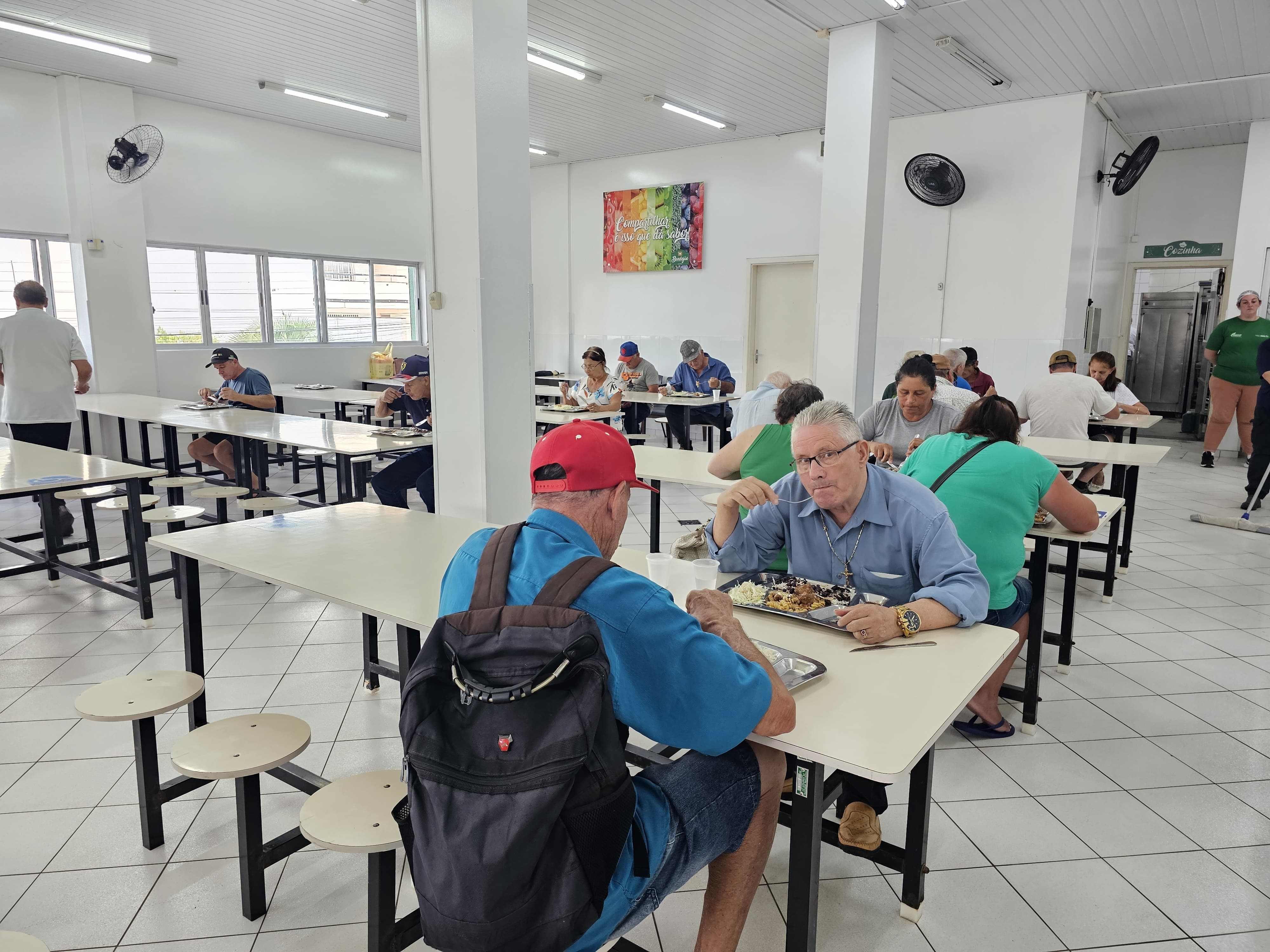 Salete Picolli também almoça com frequência no Restaurante Popular. Quando venho pro Centro, faço minhas coisas e já almoço aqui. Aproveito para conversar com as pessoas e ver os conhecidos, explicou.