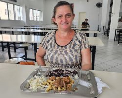 Solinei Michelon frequenta há anos o Bandejão. Para ela, que mora no Vitório Rosa, facilita pois consegue almoçar comida boa e com um preço acessível, sem precisar se deslocar. Trabalho no centro e com o Bandejão não preciso ir pra casa pra almoçar. Aqui tem comida boa e com preço melhor ainda, comentou.