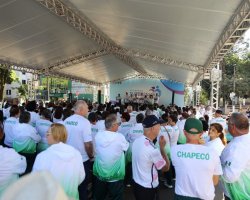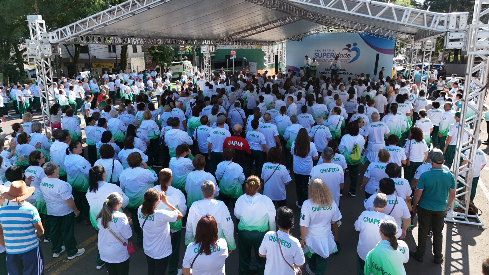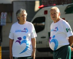 Um aulão de ginástica com a entrega de uniformes para os participantes do programa Superidade movimentou a manhã de sábado para os idosos de Chapecó. A atividade aconteceu na Praça Coronel Bertaso e reuniu cerca de 1.500 idosos participantes do programa. O investimento da Administração Municipal, foi de cerca de R$ 200 mil, entre camiseta, agasalho e jaquetas.