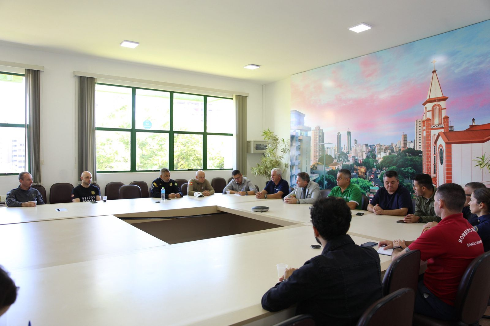 Na manhã desta sexta-feira o Conselho de Segurança realizou um encontro na sala de reuniões da Prefeitura de Chapecó, com a presença dos representantes de cada órgão, além do prefeito, João Rodrigues, e do vice-prefeito, Valmor Scolari.