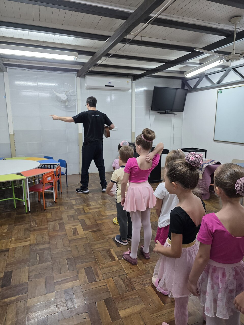 Inácio Wermuth é pai da Gabriela, de 11 anos, que faz balé intermediário, e do Guilherme, de 6 anos, que faz musicalização. Ele comenta que questões como a socialização e a disciplina dos filhos melhoraram com as aulas na Escola de Artes. Eles procuram ajudar e organizar em casa, fazer as coisas da maneira correta, por conta dessa atividade fora de casa, além da escola. Estão com o comportamento mais bonito, mais sociáveis, mais comunicativos. Eles têm perseverança e não faltam às aulas por nada. O potencial desenvolvido nos alunos é sem palavras, a escola é uma referência, finaliza.