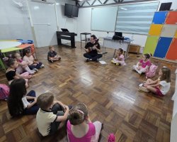 Para o Professor de Musicalização, Eduardo Gisi, a tendência é de um ano com muitas aulas engrandecedoras, pois muitos alunos estão chegando pela primeira vez na escola e isso faz com que eles fiquem instigados a aprender. A musicalização trabalha diversas áreas importantes, como a coordenação motora, os aspectos cognitivos, a socialização e a autoestima. Isso será colocado de uma maneira natural e vai proporcionar um desenvolvimento mais seguro para a pessoa. E, com o fato de ter influências musicais aqui, vai ajustar o modo de enxergar a música, com outra percepção, outra sensibilidade, fala o professor.