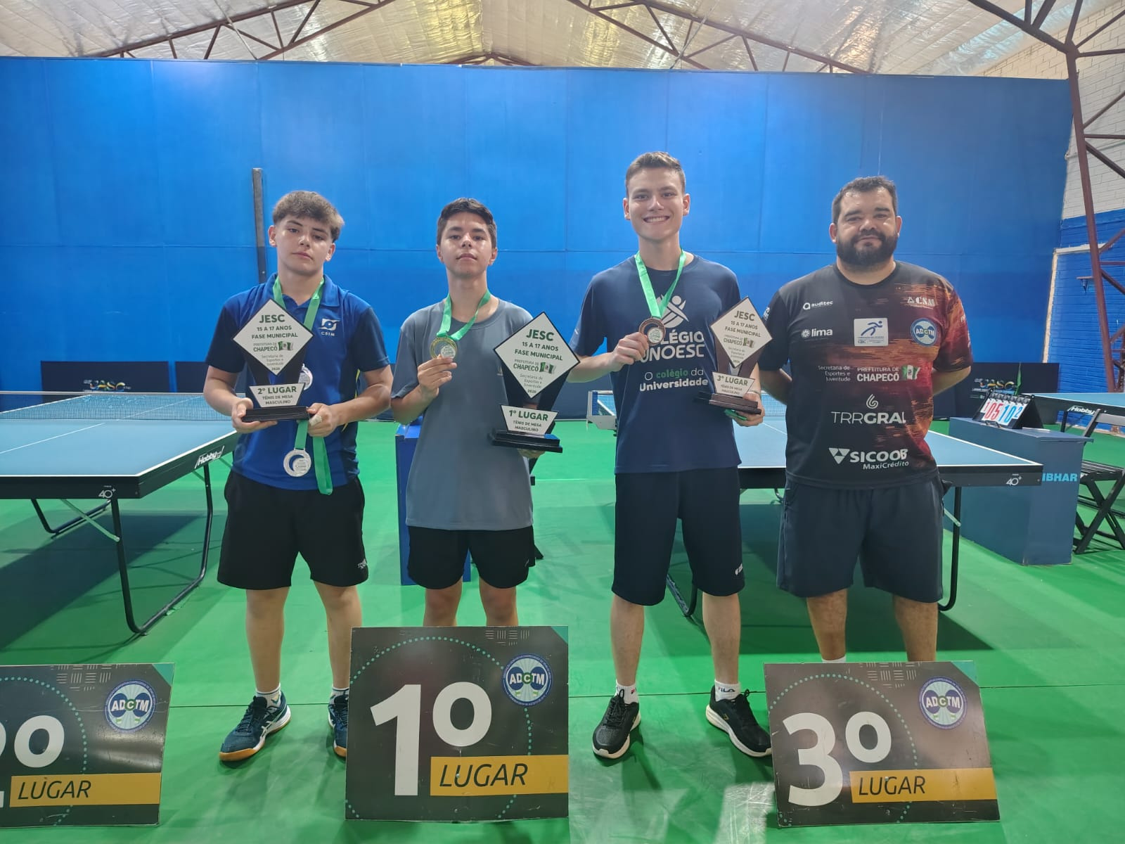 O Centro de Treinamento Cleberson Silva, da Associação Desportiva Chapecoense de Tênis de Mesa, sediou nesta quarta-feira (04) as disputas da primeira modalidade da fase municipal de Chapecó dos Jogos Escolares de Santa Catarina. Ao todo, mais de 70 mesatenistas participaram das competições.