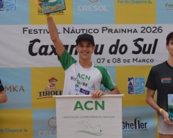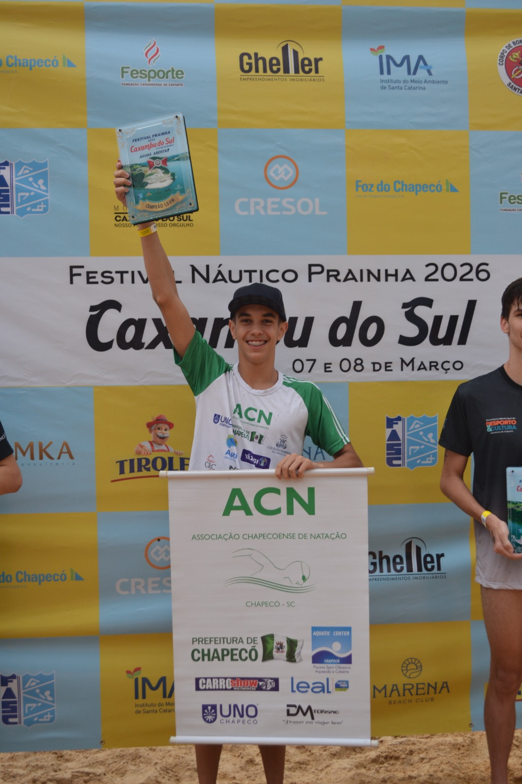 A equipe de natação da PREFEITURA MUNICIPAL DE CHAPECÓ / ASSOCIAÇÃO CHAPECOENSE DE NATAÇÃO / AQUATIC CENTER / UNOCHAPECÓ / DM TURISMO / LEAL ASSESSORIA / CARRO SHOW MULTIMARCAS / INVOICE / BRASÃO SUPERMERCADO / SICOOB / KROSS ATACADISTA disputou no sábado (7) o 1º Festival Náutico de Caxambu do Sul, no recém-inaugurado complexo turístico da prainha daquele município.