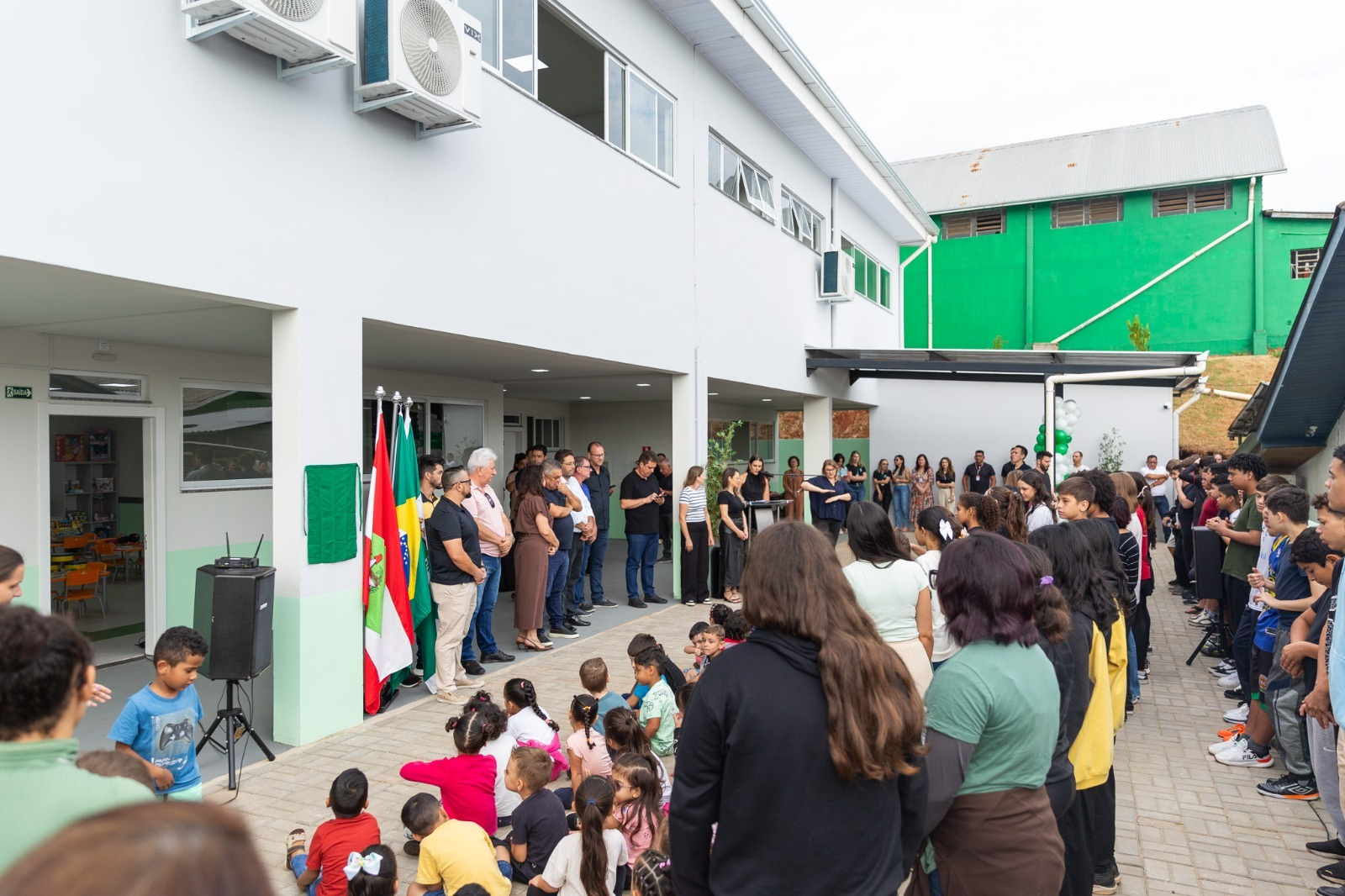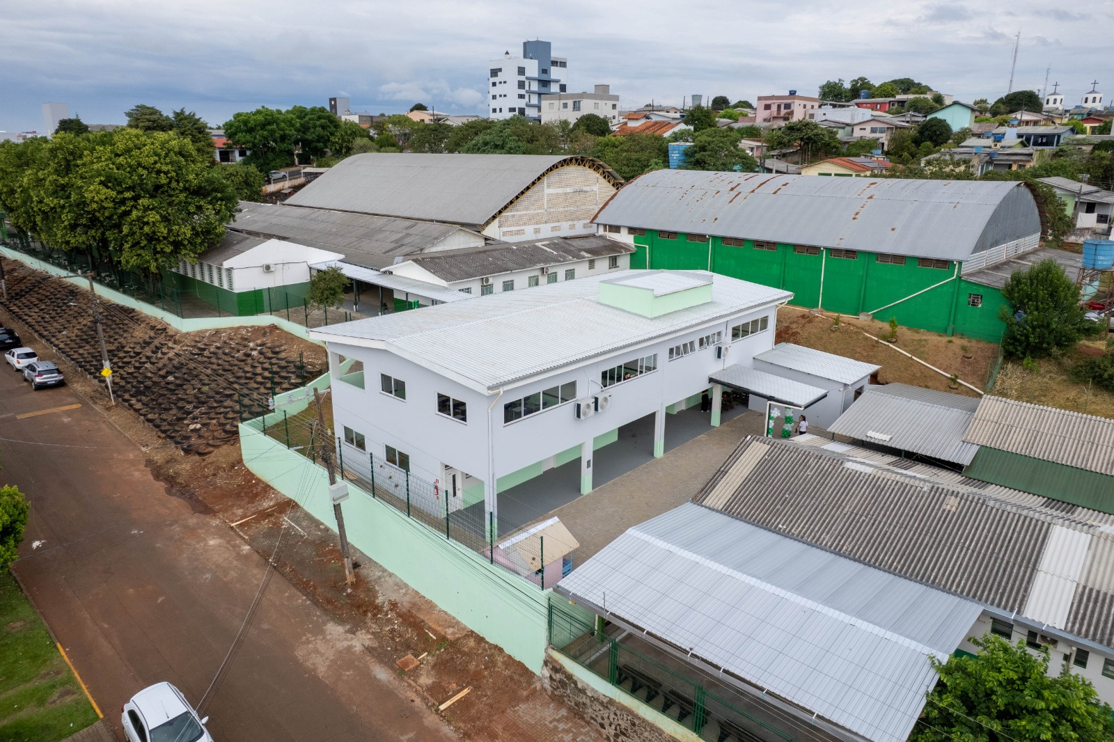 A nova estrutura possui dois pavimentos e totaliza 630 m² de área construída, com investimento de R$2.745.993,00. O espaço conta com três salas de aula em cada pavimento, além de banheiros, reservatório, piso inclinado, muros e alambrados, garantindo melhores condições de atendimento à comunidade escolar.