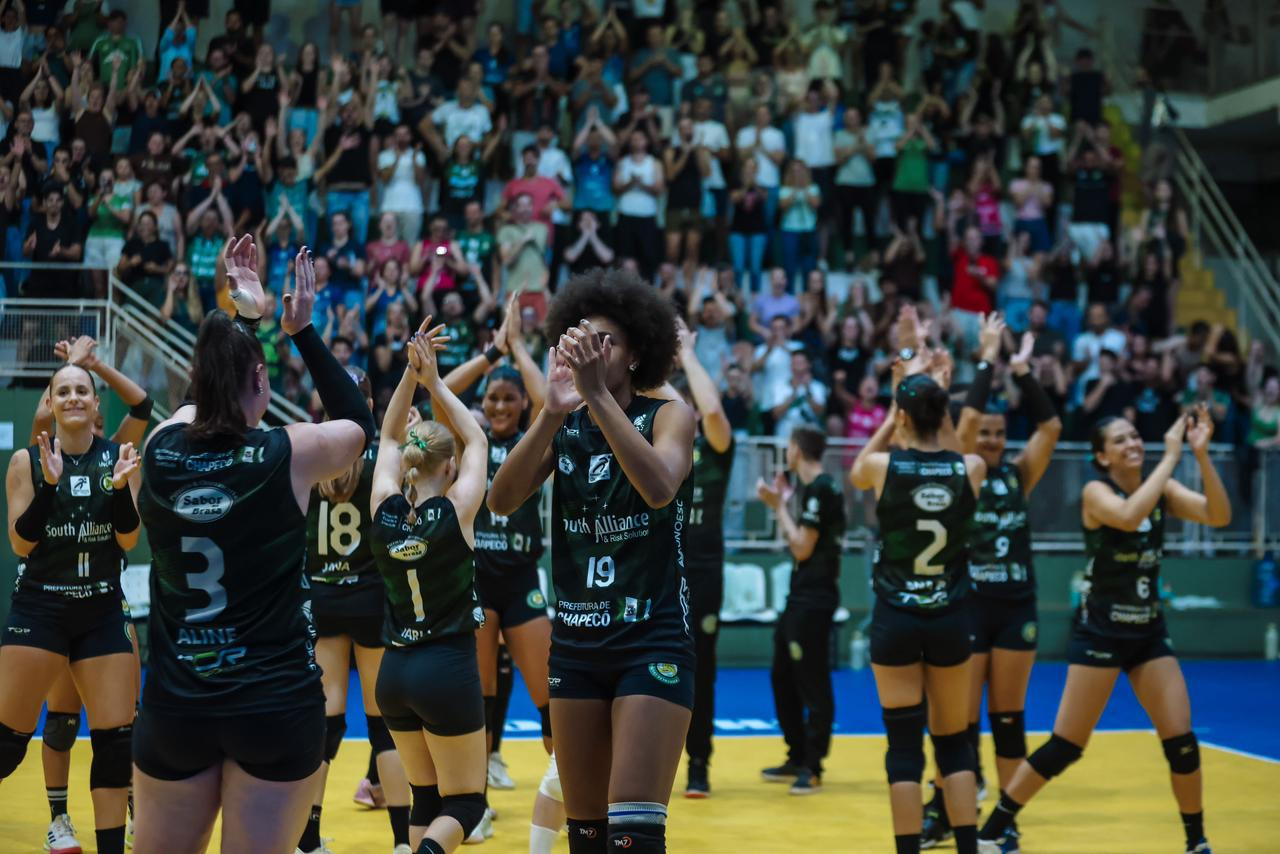Dentro de quadra, o começo foi difícil. O Pinheiros abriu vantagem ao vencer o primeiro set por 25 a 12. Mas o que veio depois foi uma reação emocionante. Demonstrando personalidade, determinação e muita união, as donas da casa viraram o jogo de forma espetacular. No segundo set, vitória por 25 a 22. No terceiro, mais emoção: 25 a 23. E no quarto set, em um duelo eletrizante ponto a ponto, as chapecoenses fecharam em 28 a 26, garantindo a vitória por 3 sets a 1 e levando a torcida ao delírio.