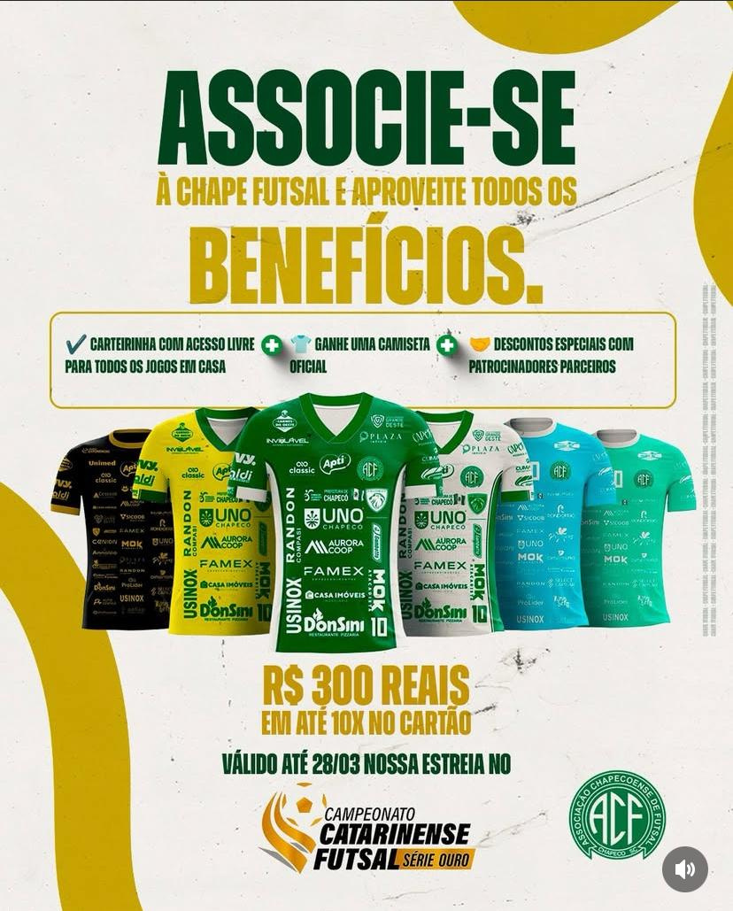 "É uma grande promoção. Com R$ 300 você terá acesso a todas as partidas da Chapecoense Futsal em casa em 2026, sem precisar pagar mensalidade, e ainda ganha uma camisa. Além disso, você ajuda financeiramente o clube. Temos grandes objetivos, e contamos muito com o apoio da nossa torcida mais uma vez", disse o presidente Clayton Tressoldi.