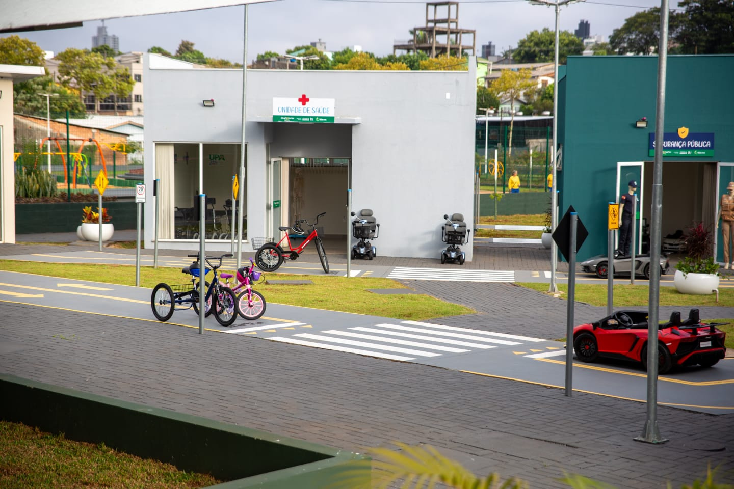 Nesta quinta-feira crianças de escolas municipais e do Programa Verde Vida visitaram o local. "É muito legal, gostei de tudo. Visitei todos os espaços e um dos que mais gostei foi o prédio da Segurança Pública", disse Maria Ísis, sete anos, estudante do segundo ano da EBM Anita Garibaldi.