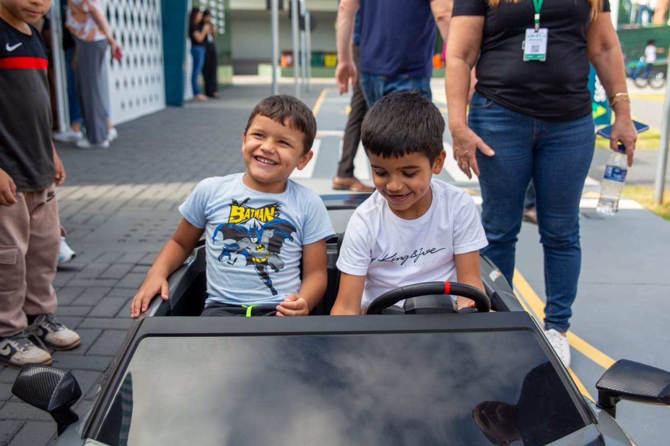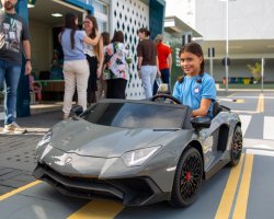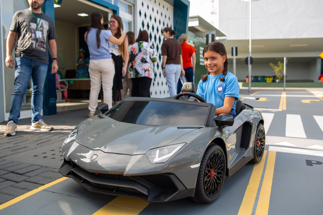 Tayla Haloá de Jesus, seis anos, do primeiro ano de EBM Manira Sartori, gostou bastante de andar num carrinho elétrico.