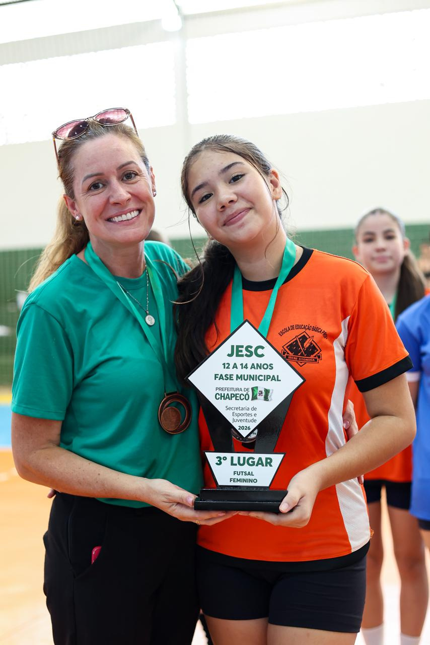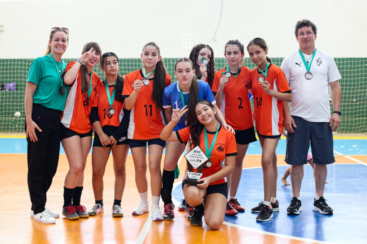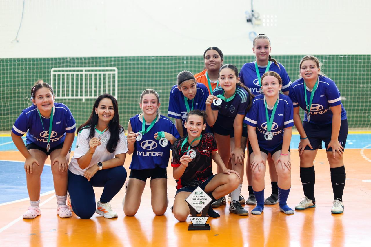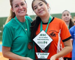 Na tarde desta quarta-feira (18), foi definida a equipe campeã da modalidade de futsal feminino na fase municipal do JESC, categoria de 12 a 14 anos. O Colégio Unochapecó conquistou o troféu.