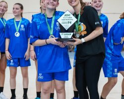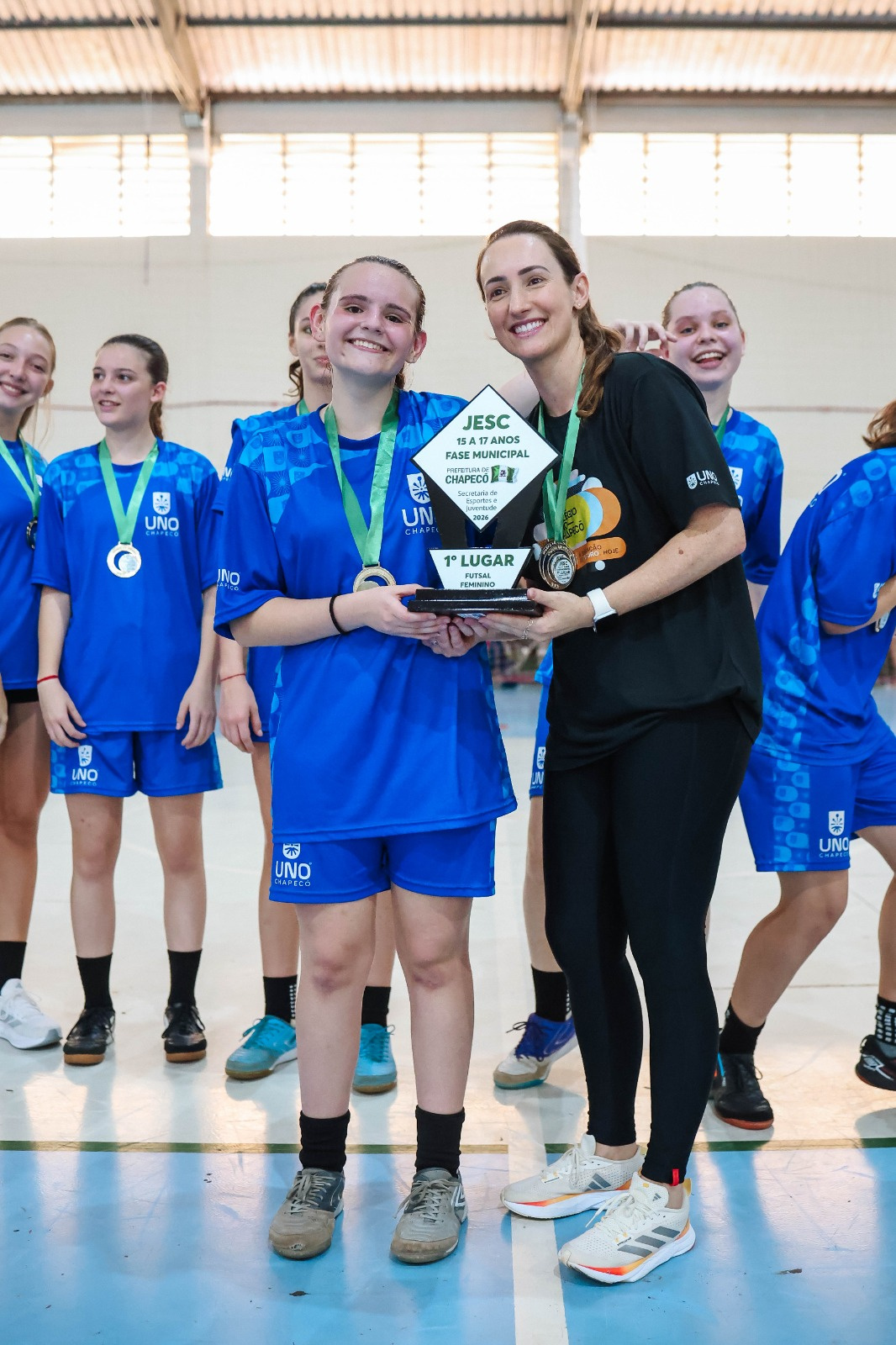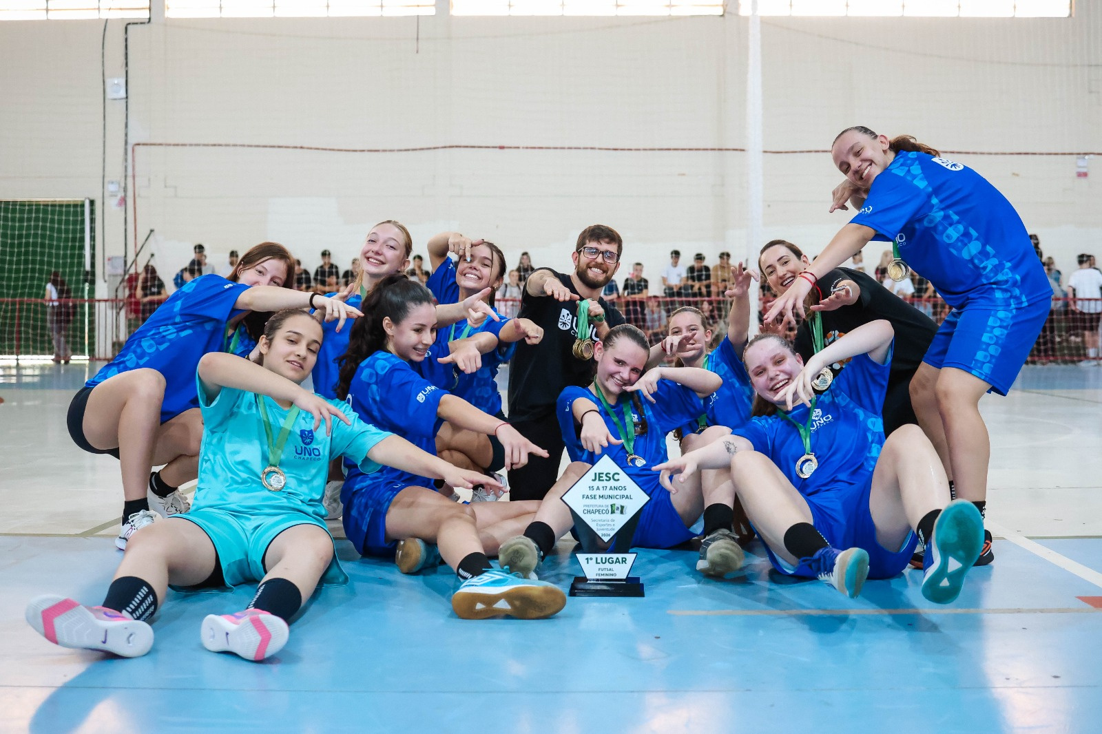 A equipe do Colégio Unochapecó conquistou, na manhã desta quinta-feira (19), o título da modalidade de futsal feminino na categoria de 15 a 17 anos, pela fase municipal dos Jogos Escolares de Santa Catarina (JESC). As partidas finais foram realizadas no Ginásio da EEB Bom Pastor.