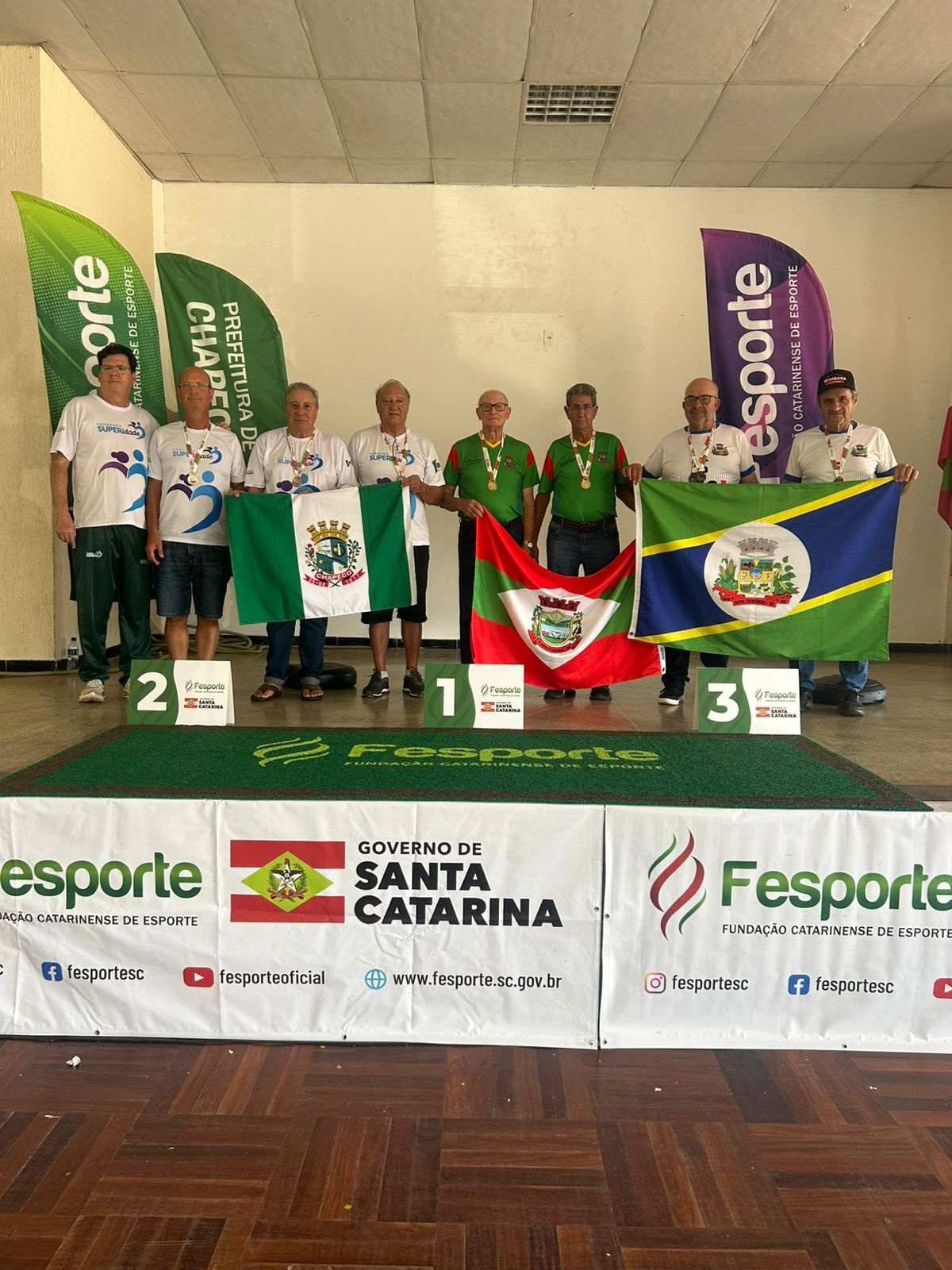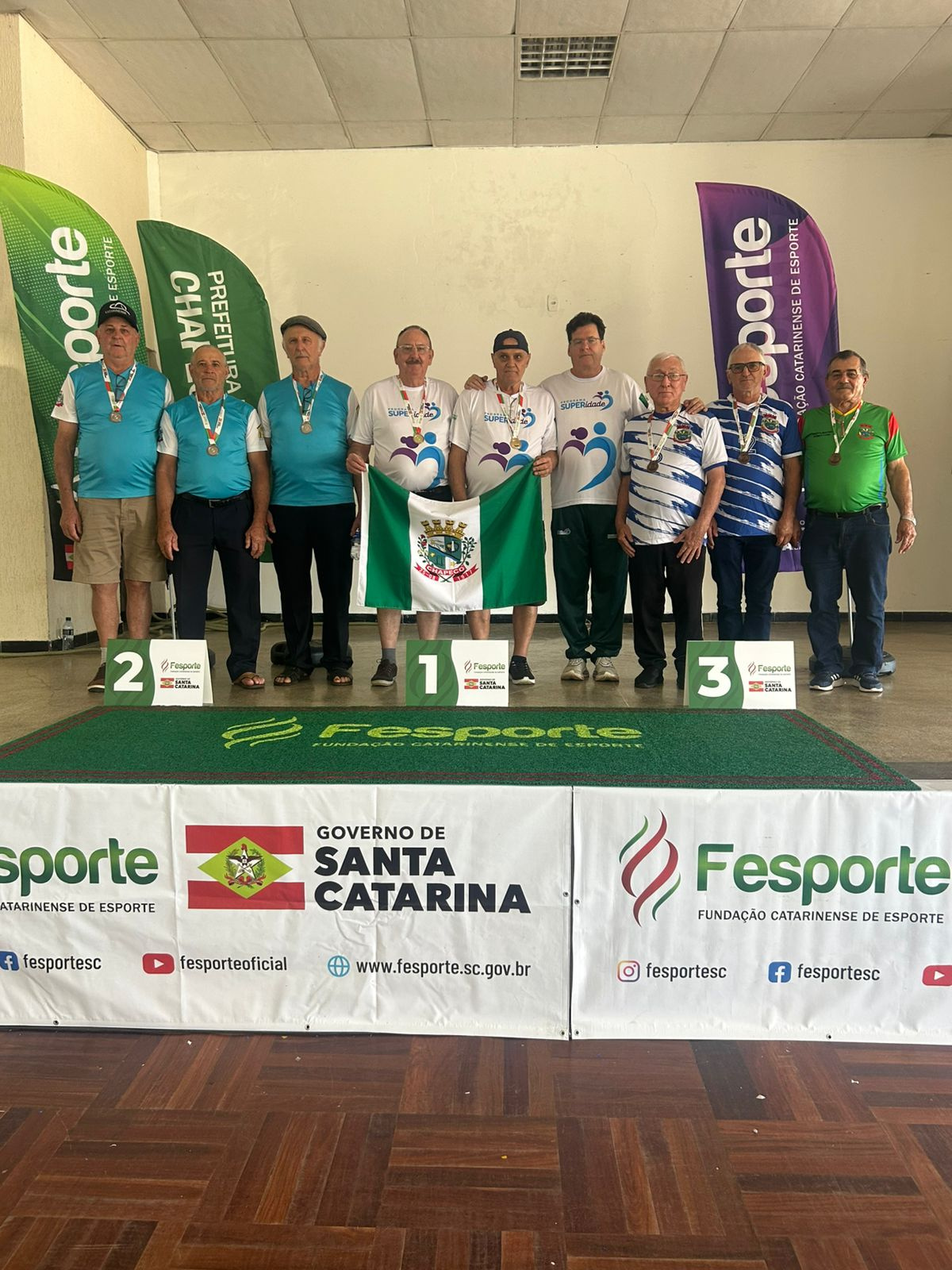 A bocha masculina também conquistou a vaga com 100% de aproveitamento, somando cinco vitórias. Na primeira fase, venceu Nova Erechim por 12 a 4, Águas Frias por 12 a 3 e Planalto Alegre por 12 a 2. Na semifinal, bateu Guatambu por 12 a 2 e, na final, superou Caxambu do Sul por 12 a 11.