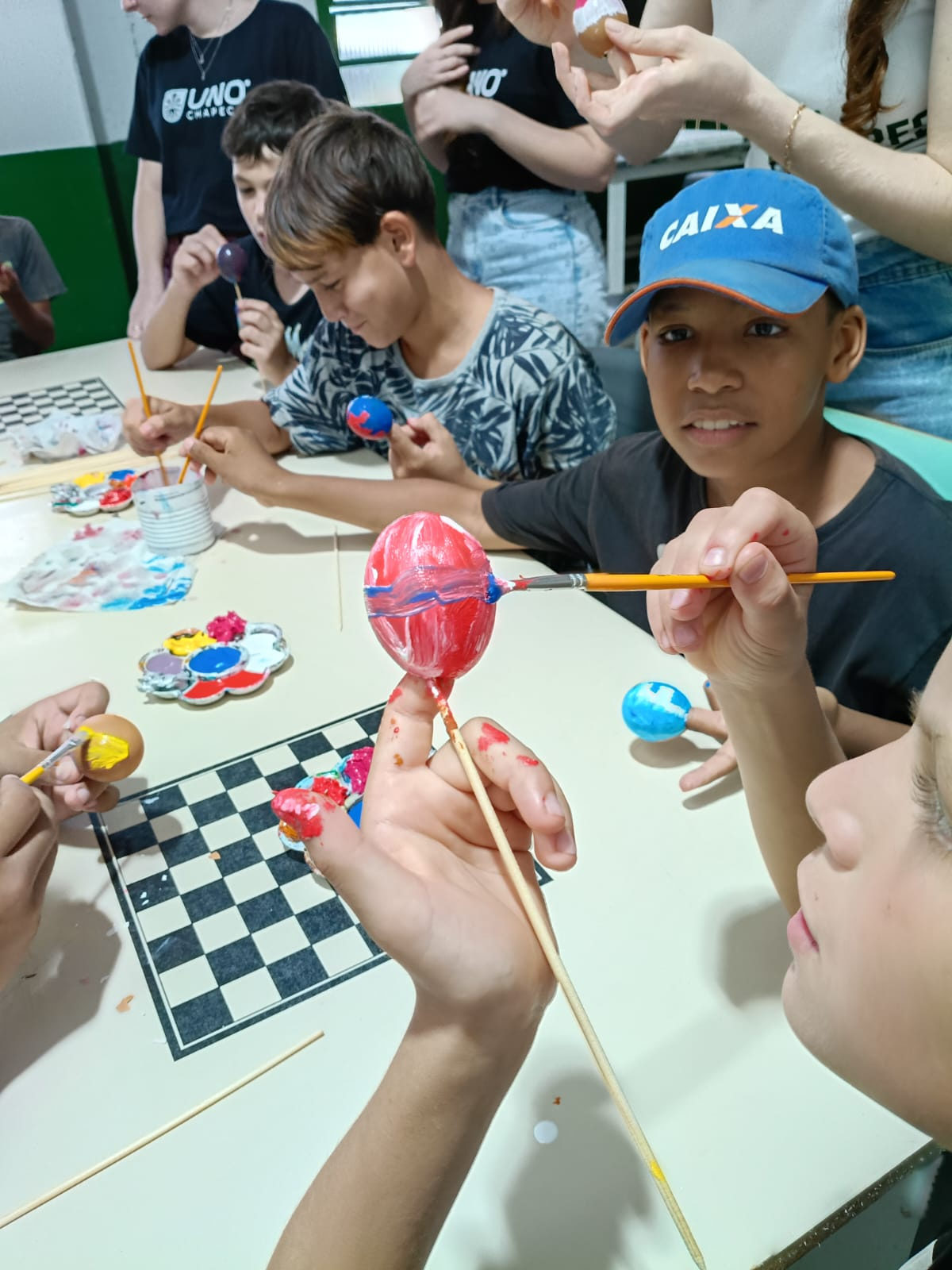 Nesta segunda-feira (23) acadêmicos do 1º ao 3º ano do curso de Medicina da Unochapecó realizaram atividades de Páscoa com os alunos do Centro de Convivência e Fortalecimento de Vínculos (CCFV) do Passo dos Fortes. Os estudantes da Associação Atlética Acadêmica de Medicina Desbravadores proporcionaram um momento especial às crianças atendidas pelo serviço.