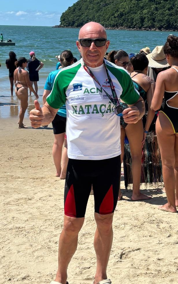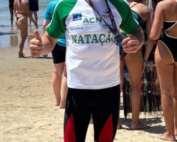 Entre os 141 atletas que disputaram as provas realizadas na praia de Cabeçudas, em Itajaí, Idemar Tiepo (New Escapamentos) foi terceiro colocado na prova de 1500m, na categoria 65 a 69 anos.