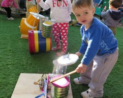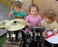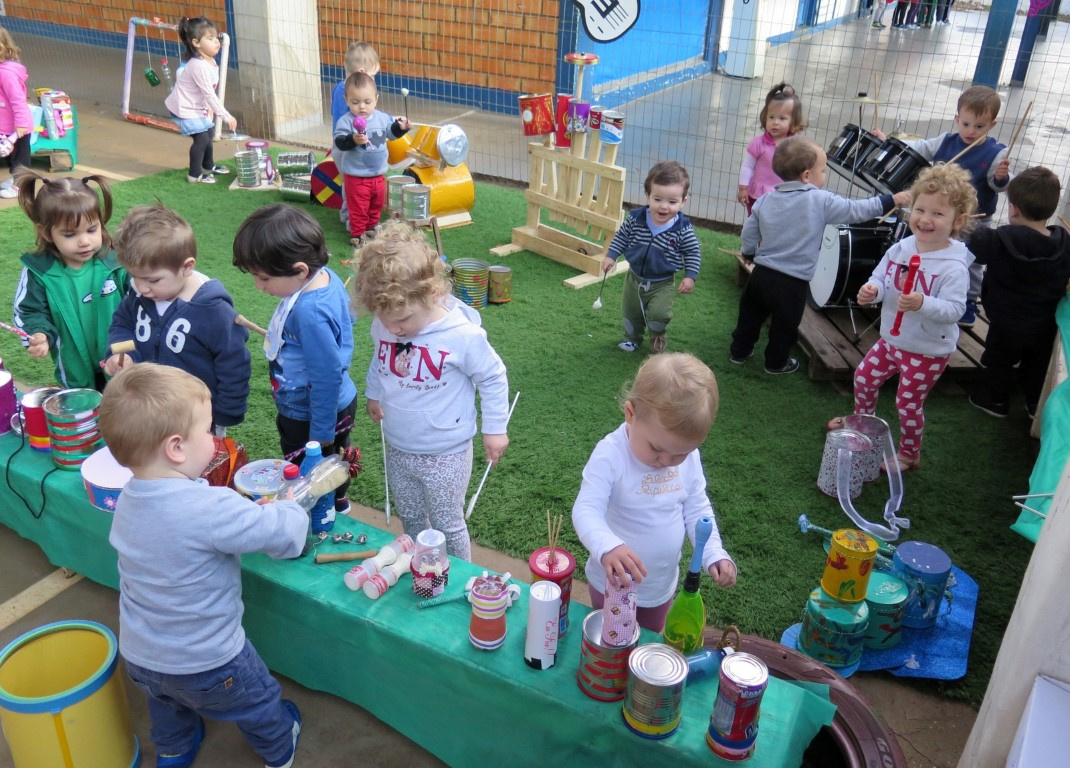 Em uma parceria entre os familiares e o Ceim, as turmas do berçário a pré-escola, precisaram construir diferentes instrumentos musicais com materiais alternativos. Além de identificar e diferenciar diversos instrumentos contribuiu para a socialização das crianças. A atividade foi uma iniciativa das Professoras de Linguagens Patricia Bueno e Fernanda Tonet que pensaram na musicalidade como sendo um papel primordial para o desenvolvimento psicomotor, sócio afetivo, cognitivo e linguístico, além de ser facilitadora do processo de construção do conhecimento dos educandos.