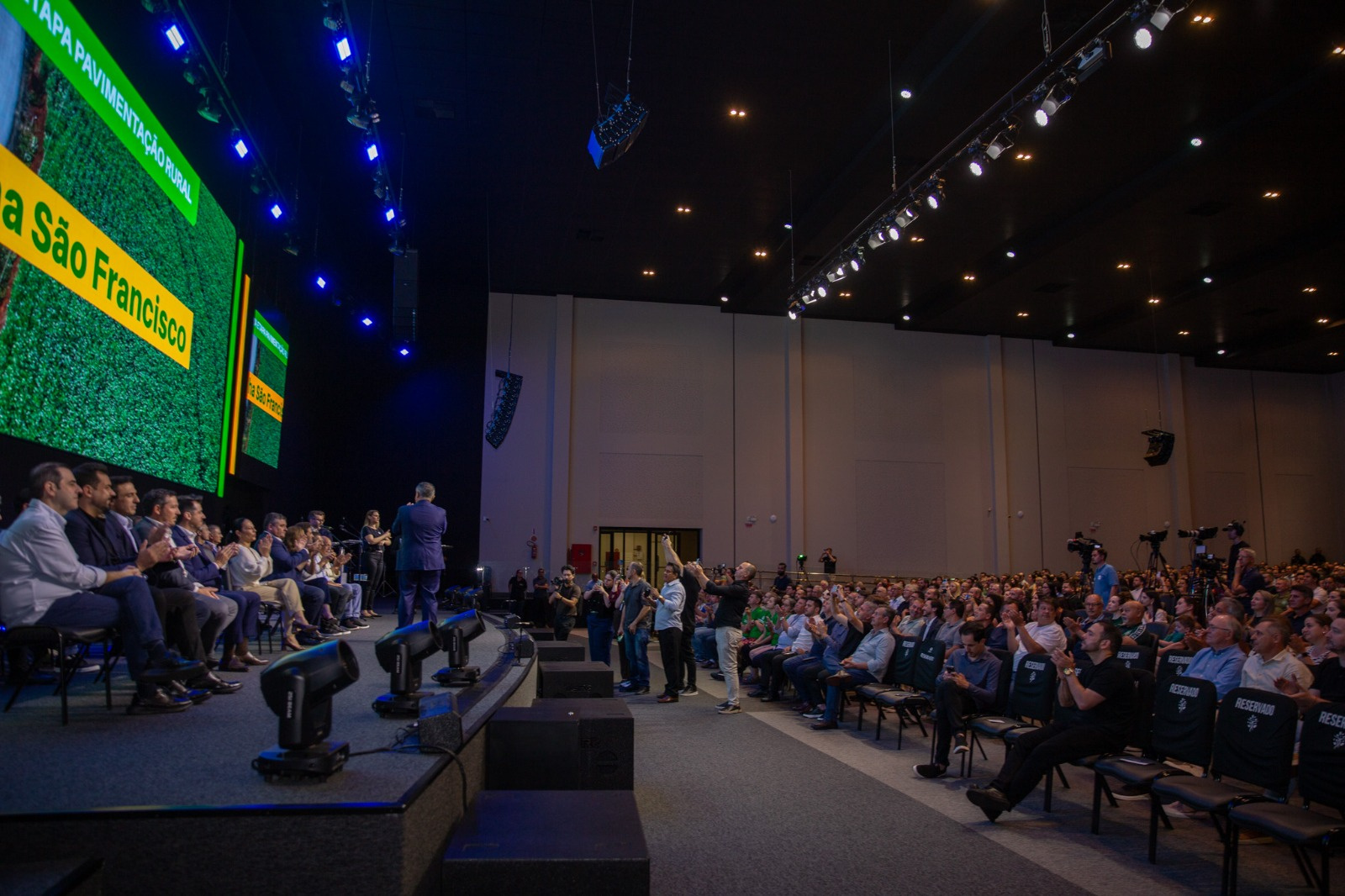 Enquanto o mundo vive incertezas com guerras, aumento do preço do petróleo, em Chapecó nós estamos lançando mais obras e preparando a cidade para o futuro. Com isso chegamos a R$ 1,9 bilhão em obras realizadas, em andamento ou em licitação. Aqui o poder público estimula quem quer investir e melhora a infraestrutura da cidade para garantir emprego, segurança e melhor qualidade de vida. Nós modernizamos o Parque de Exposições, tiramos o barro e a poeira das ruas, levamos o asfalto para o meio rural e vamos pavimentar 100% das ruas e trocar toda a iluminação por LED. Aqui estamos unidos e o reflexo é um volume de obras privadas de R$ 22 bilhões", disse o prefeito.