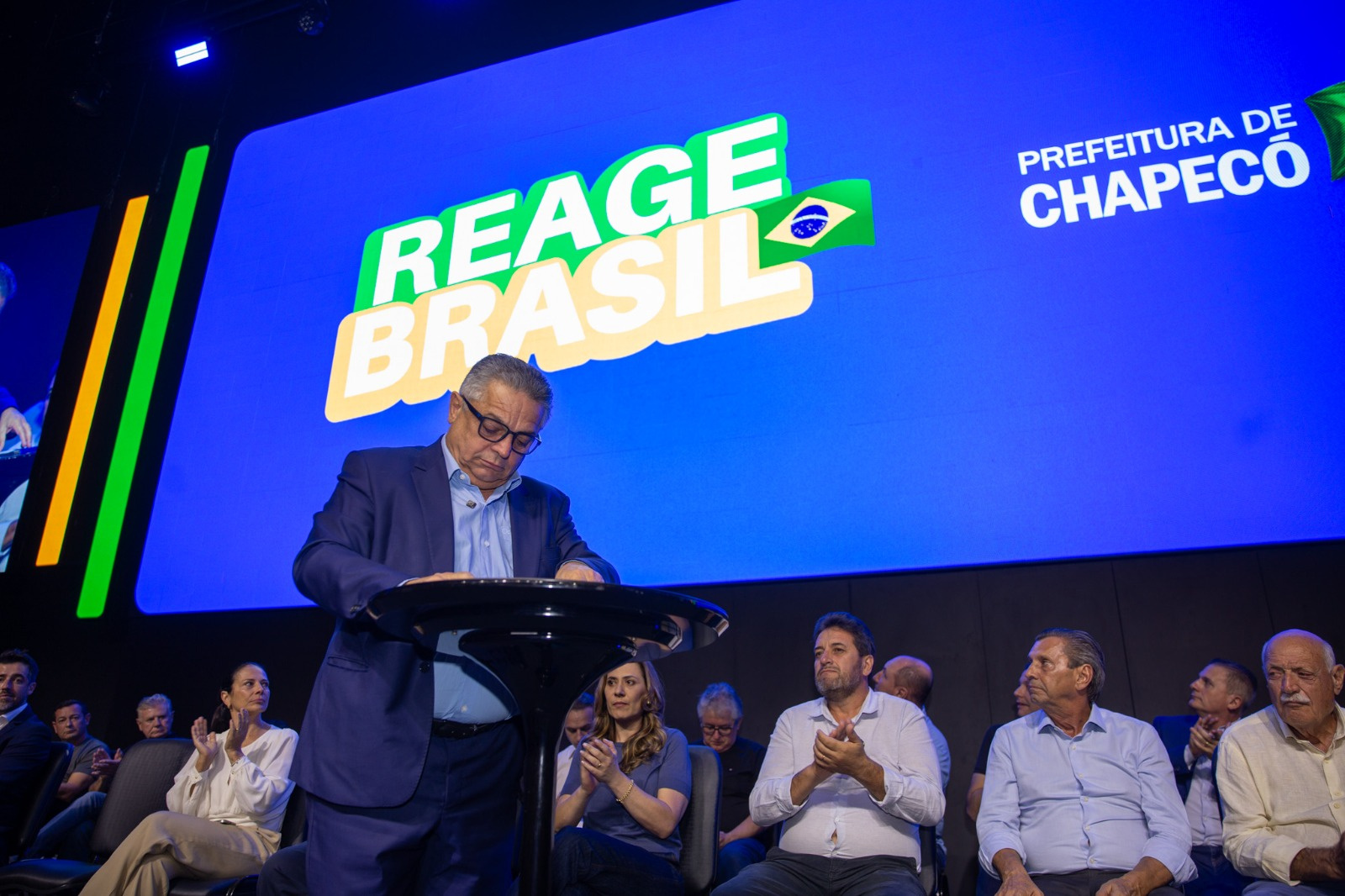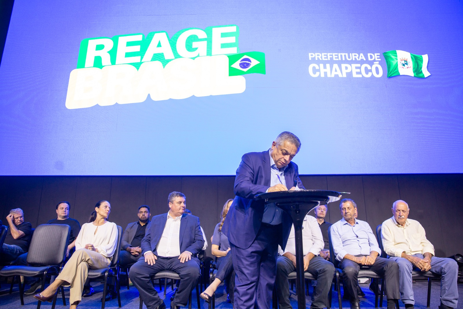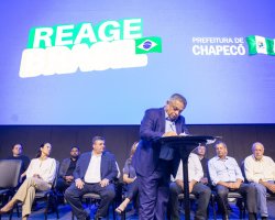 A Prefeitura de Chapecó lançou nesta terça-feira (31) o programa Reage Brasil, que consiste num pacote de ações e obras de cerca de R$ 200 milhões, com o objetivo de manter Chapecó entre os melhores do país em investimentos e geração de emprego. O ato de assinatura do projeto de lei que será encaminhado para a Câmara de Vereadores foi realizado na Get Church.