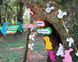 As crianças e adolescentes do Centro de Convivência e Fortalecimento de Vínculos - CCFV Santo Antônio, estão participando ao longo desta semana, de uma série de atividades lúdicas em alusão à Páscoa. Na manhã desta quarta-feira (01), o serviço proporcionou um passeio ao Parque Palmital e as crianças participaram de uma animada caça ao tesouro. Divididas em grupos, elas foram conduzidas pelos professores em cada etapa, seguindo pistas e desenvolvendo o trabalho em equipe de forma divertida e interativa.