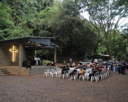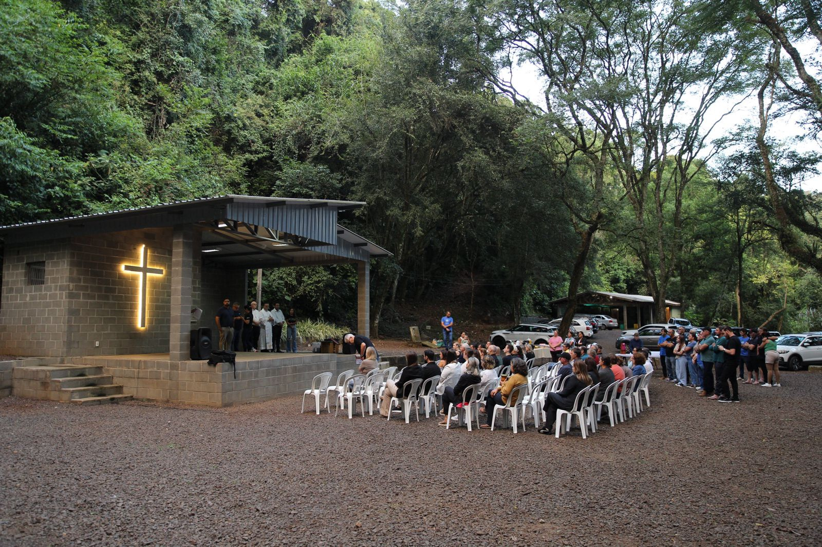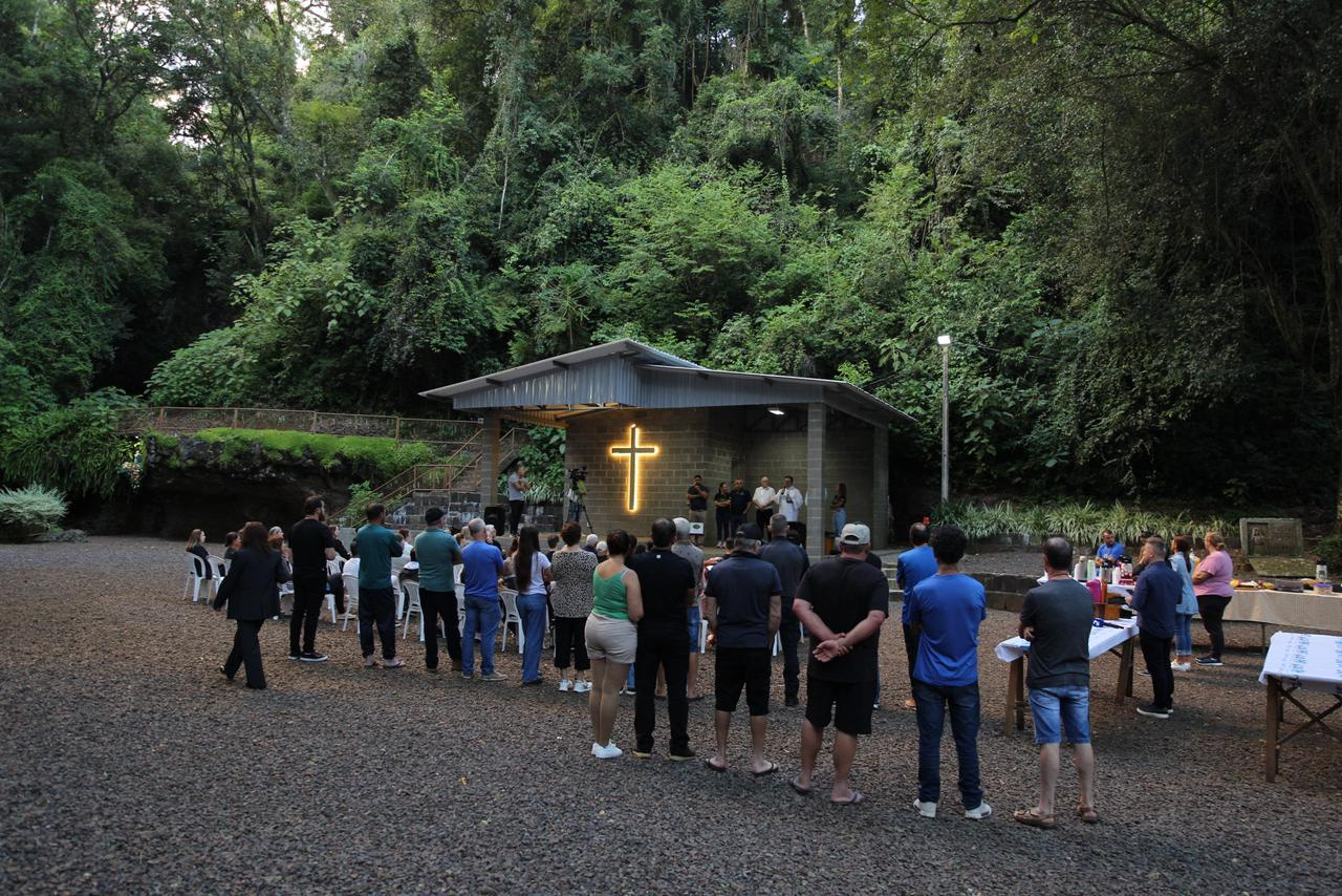 O ato de apresentação do projeto foi na gruta, com a presença do prefeito de Chapecó, João Rodrigues, da primeira dama, Fabiana Matte Rodrigues, do secretário de Desenvolvimento Econômico, Turismo e Inovação, Márcio da Paixão Rodrigues, do arcebispo Dom Odelir Magri, do Pároco da Paróquia Santa Teresinha do Menino Jesus, François Cristiano Cousseau, do secretário de Agricultura e Pesca, Mauro Zandavalli e do presidente da Câmara de Vereadores, Adão Teodoro.