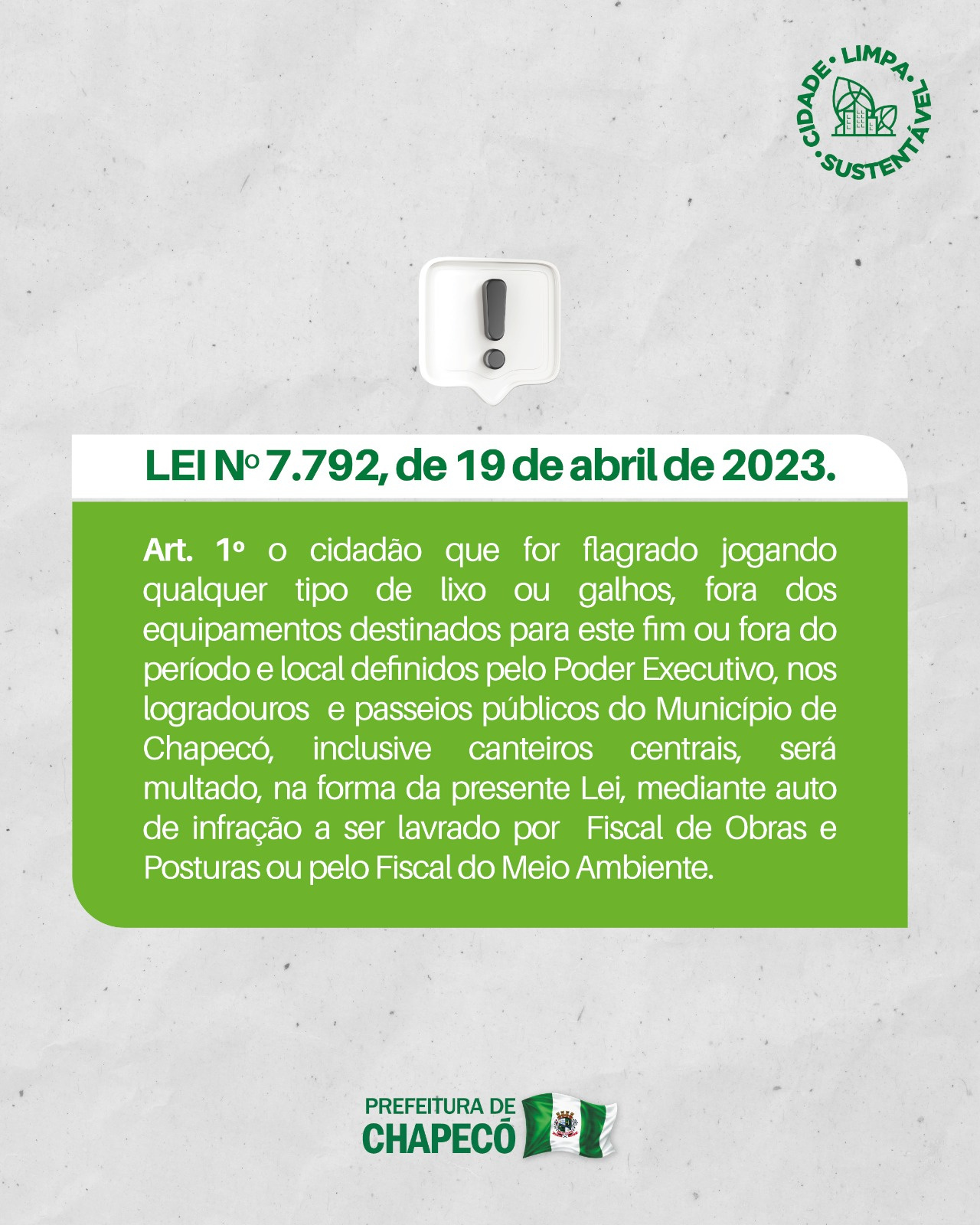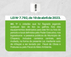 A Prefeitura alerta que o cronograma poderá sofrer alterações devido às condições climáticas. O cronograma consta no site da Prefeitura (www.chapeco.sc.gov.br). Dúvidas ou denúncias de poda irregular em árvores localizadas em espaços públicos podem ser feitas na Secretaria de Serviços Urbanos e Zeladoria, no telefone 49 3319-3600.